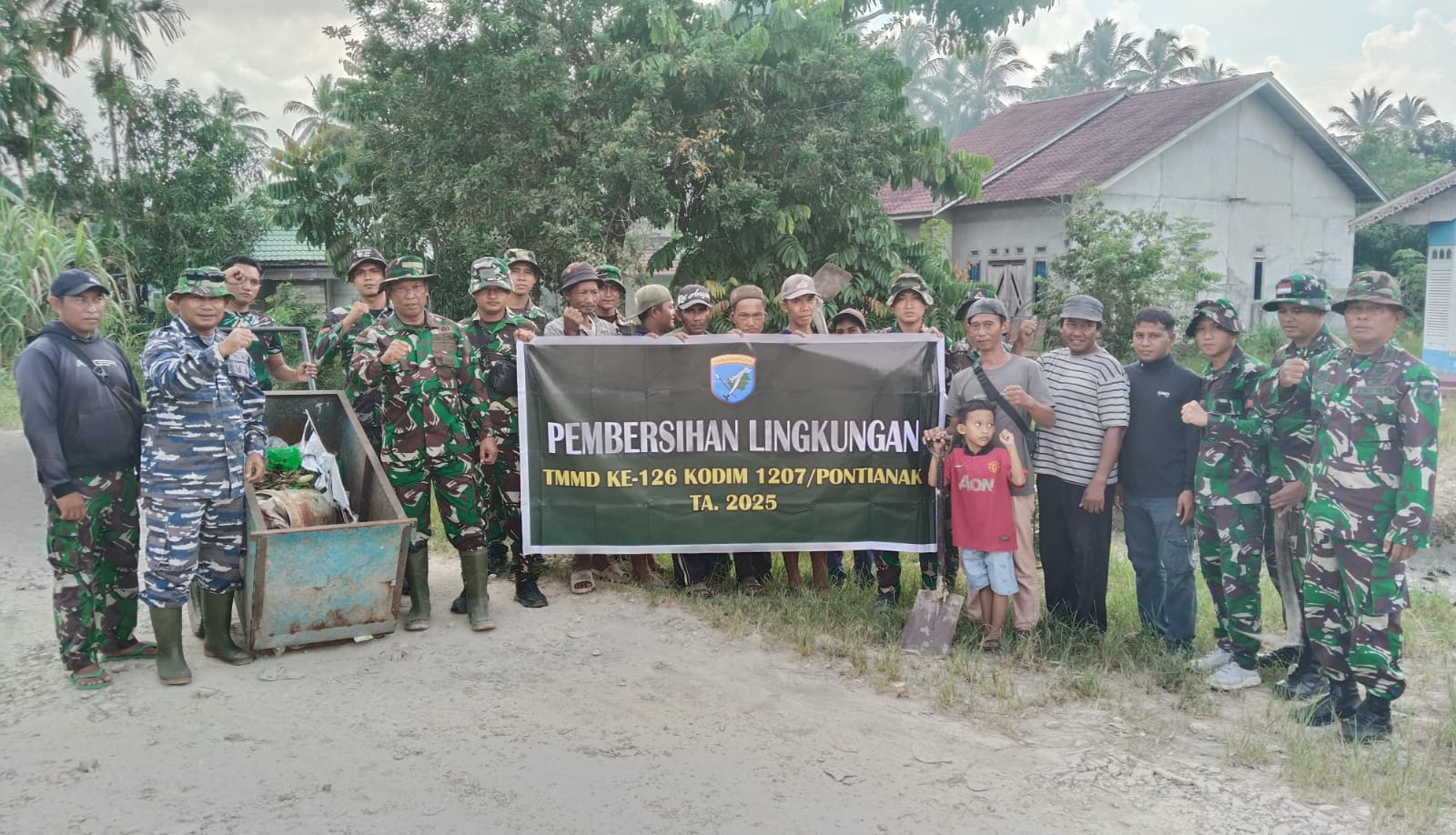 Pontianak – Peduli Lingkungan, Satgas TMMD Ke 126 Kodim 1207/Pontianak Laksanakan Pembersihan Lingkungan. Bertempat di Jalan Kalimas Hulu Desa PAL IX Kecamatan Sungai Kakap Kabupaten Kubu Raya Prov. Kalimantan Barat. Minggu (02/10/2025)