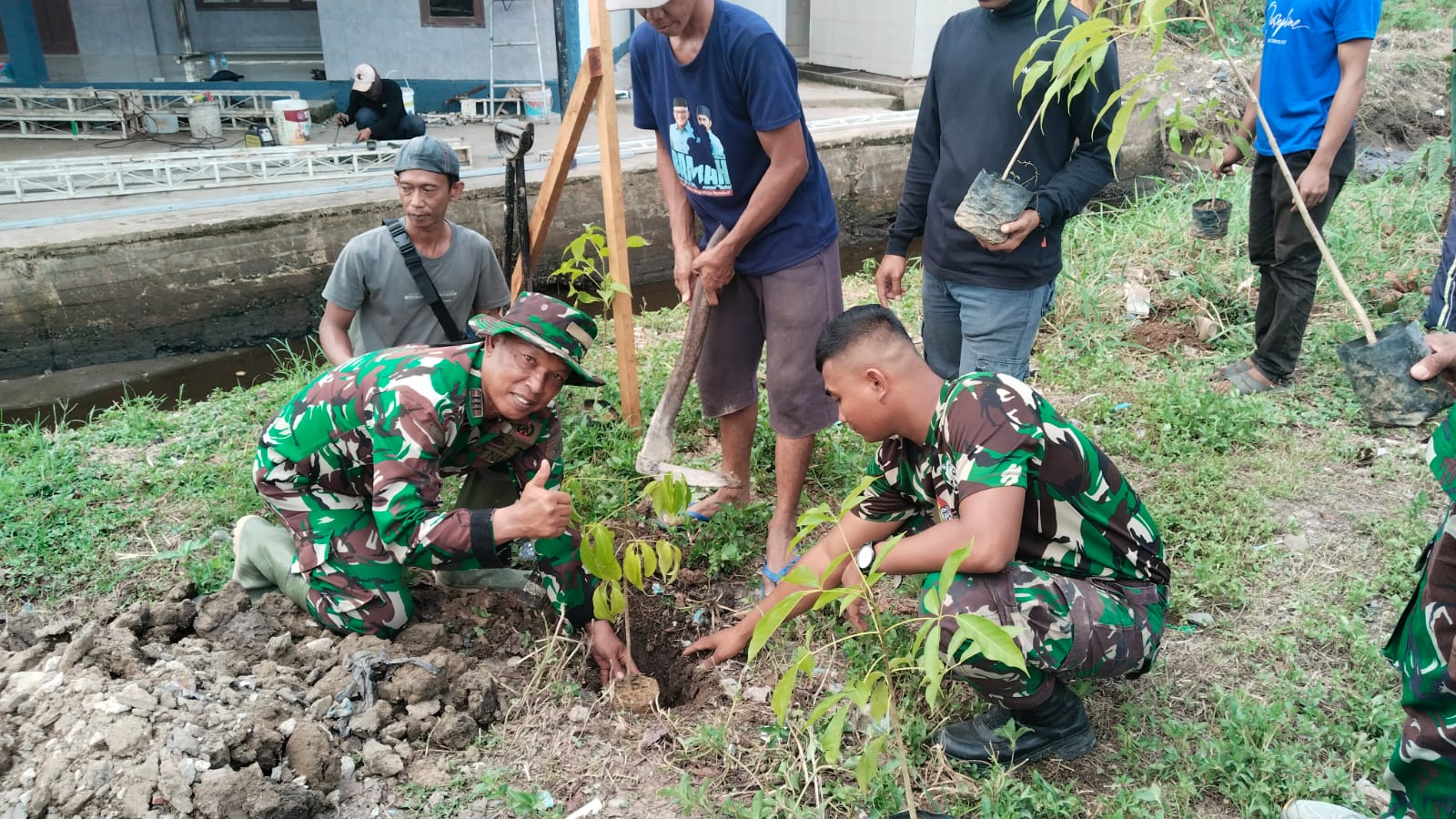 Dalam rangka mendukung pelestarian lingkungan sekaligus memperindah kawasan kegiatan, Satgas TMMD ke-126 Kodim 1207/Pontianak melaksanakan program tambahan berupa penanaman pohon di lokasi TMMD.