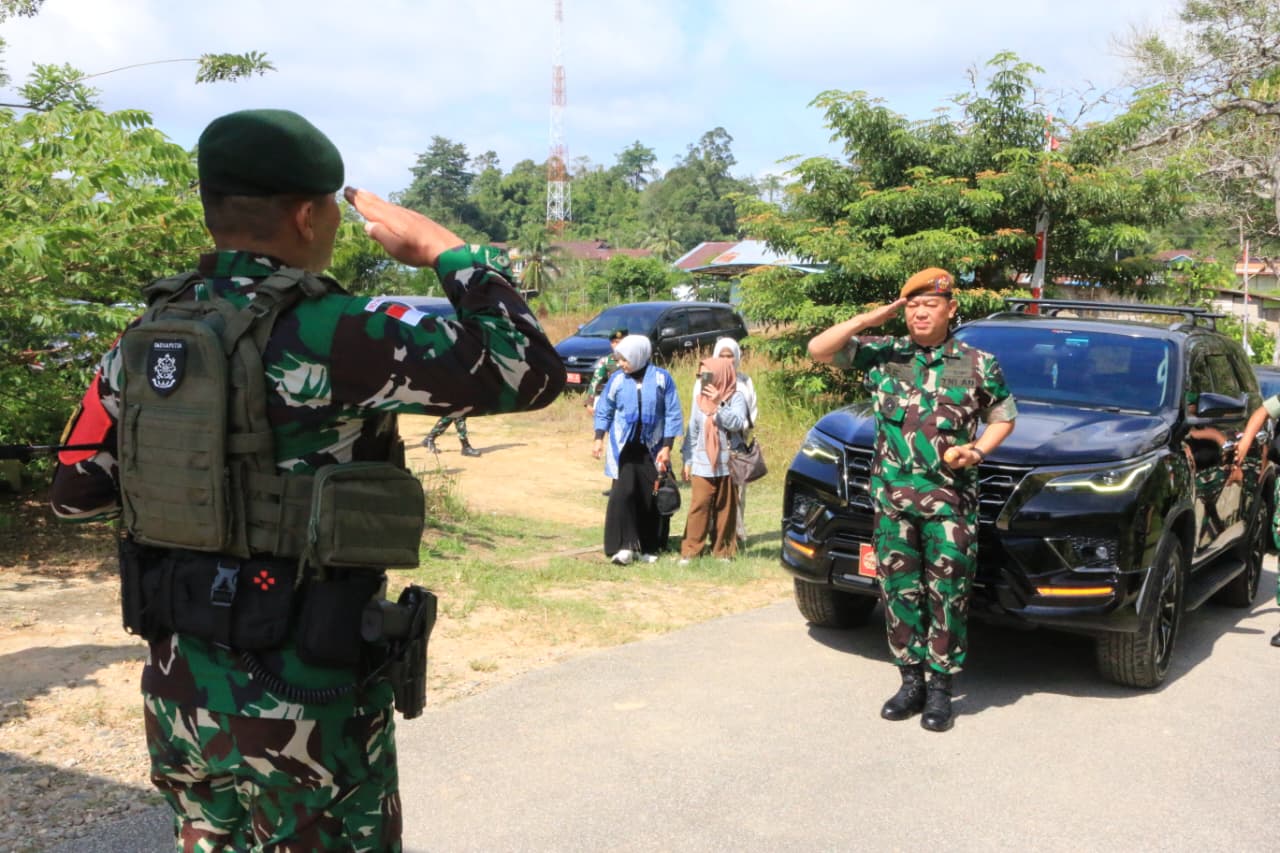Sanggau — Kasrem 121/Abw Kolonel Inf Dadang Ismail Marzuki, S.I.P., mewakili Danrem 121/Abw Brigjen TNI Purnomosidi, S.I.P., M.A.P., M.Han., dampingi Komandan Pusat Kesenjataan Arhanud Mayjen TNI R. Edi Setiawan beserta Ibu Cut Siti Hasyimah melaksanakan Dalwasev Satgas Ops DN ke Satgas Pamtas RI–Malaysia Yonarhanud 1/PBC/1 Kostrad, pada hari Rabu, (05/11/2025).