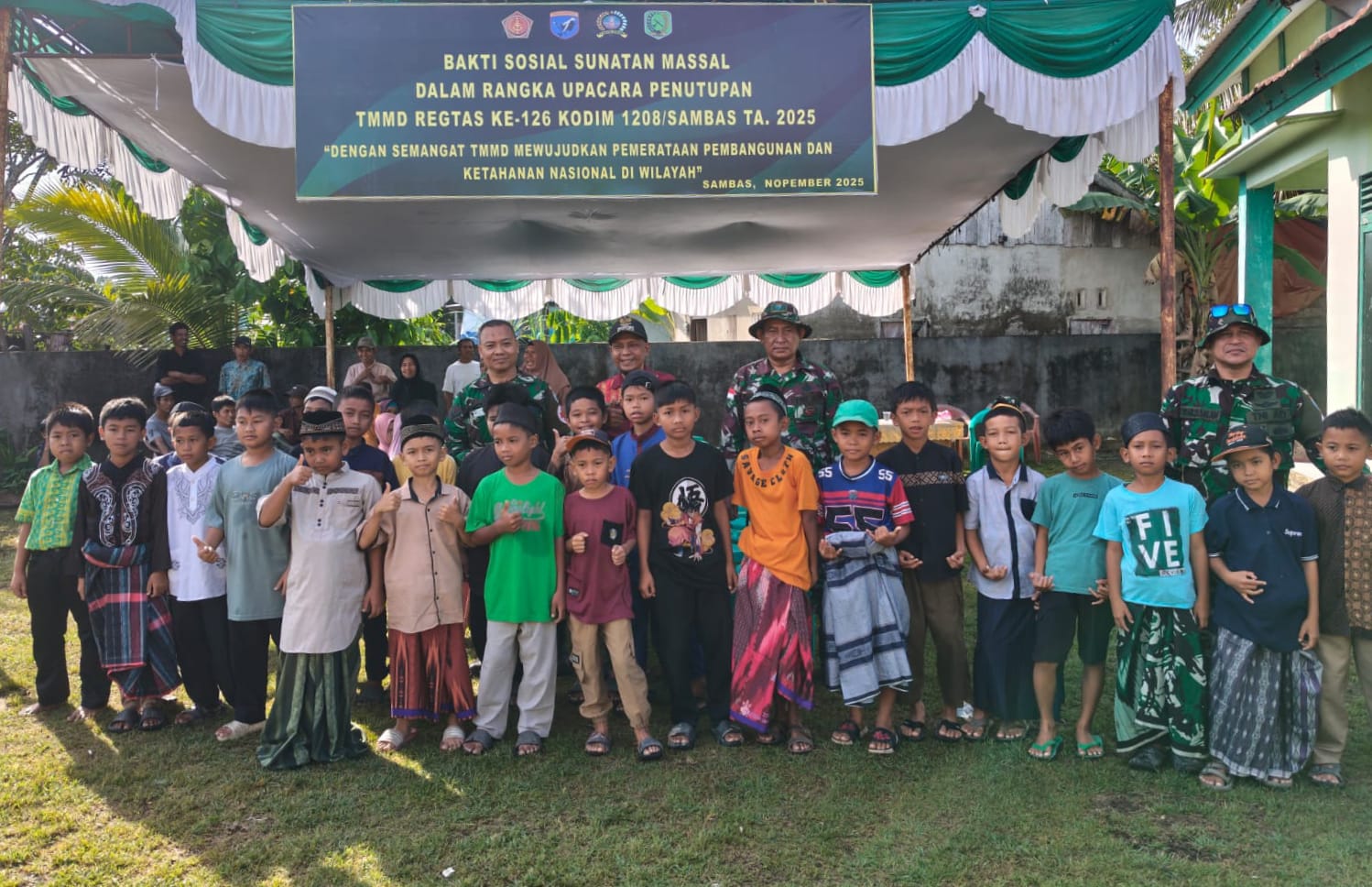 Sambas – Kegiatan penutupan TNI Manunggal Membangun Desa (TMMD) Reguler ke-126 Kodim 1208/Sambas turut dimeriahkan dengan pelaksanaan khitanan massal bagi anak-anak warga Desa Ratu Sepudak dan sekitarnya, Kamis (06/11/25).