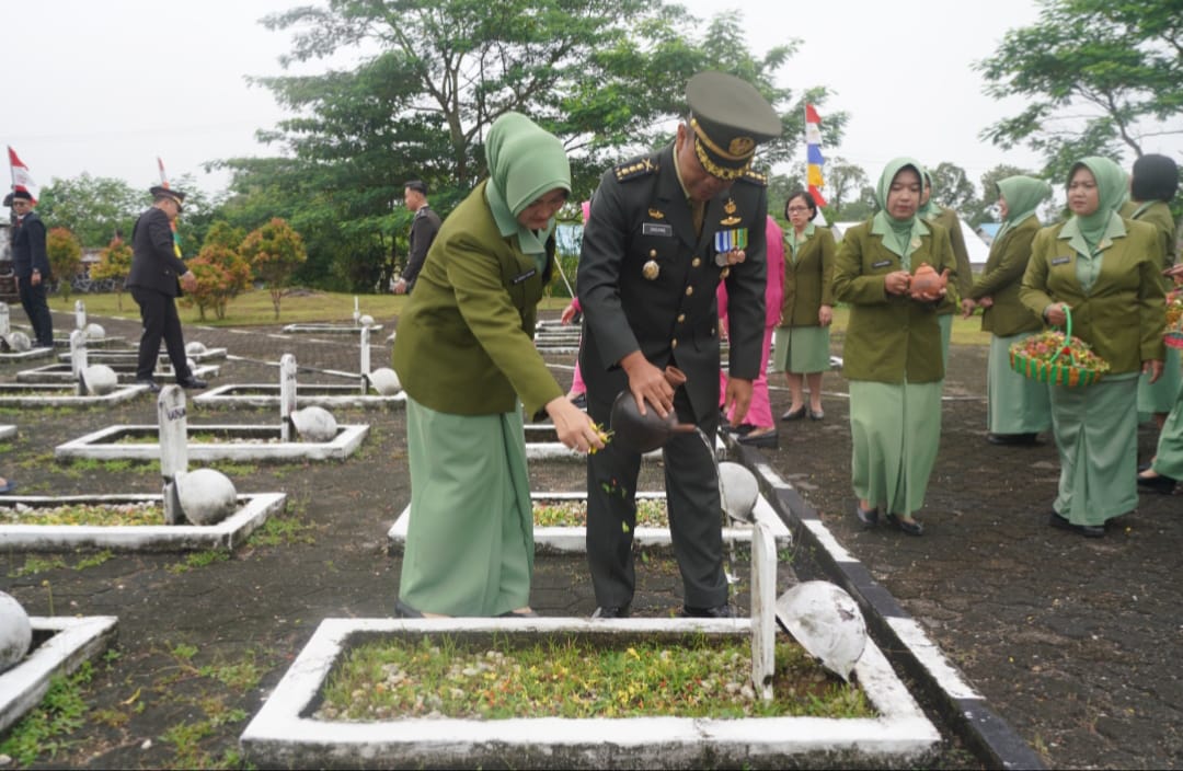 Usai upacara peletakan karangan bunga, kegiatan dilanjutkan dengan prosesi tabur bunga di makam para pahlawan yang dipimpin langsung oleh Kasrem 121/Abw. Seluruh rangkaian kegiatan berlangsung khidmat dan penuh makna, diikuti oleh para peserta upacara yang terdiri dari TNI-Polri, Pemerintah Daerah, Pelajar serta para Perwira, Bintara, dan Tamtama Korem 121/Abw dan jajaran.
