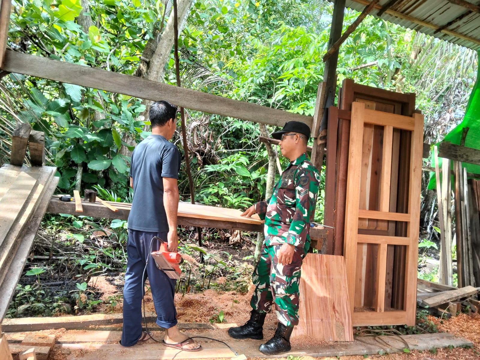 Sambas — Dalam rangka mempererat kemanunggalan TNI dengan rakyat, Babinsa Nibung Koramil 1208-08/Paloh, Sertu Naziri melaksanakan kegiatan komunikasi sosial (komsos) dengan warga binaan yang berprofesi sebagai pengrajin mebel dan pembuat pintu bangunan, Kamis (13/11/2025).