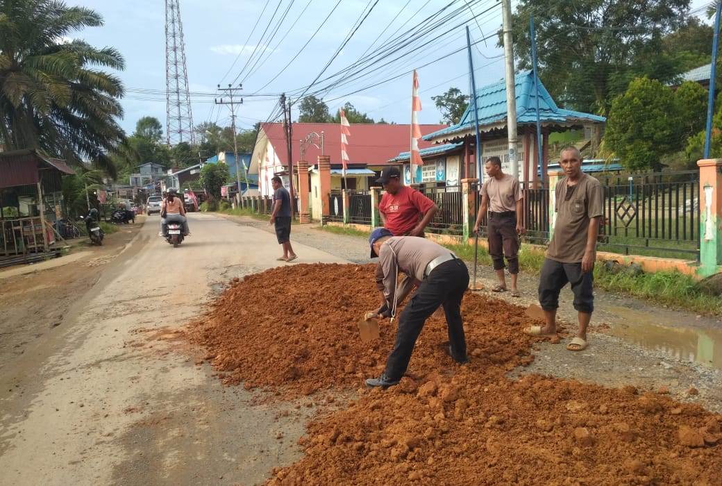 Kegiatan yang dimulai sekitar pukul 14.30 WIB tersebut dipimpin langsung oleh PS Kanit Lantas Polsek Tayan Hilir Aipda Edy Kusuma, S.H., didampingi Bhabinkamtibmas Desa Cempedak Bripka Wahyu Ariwibowo. Sebanyak lima warga turut terlibat dalam penanganan jalan rusak yang selama ini dikeluhkan masyarakat.