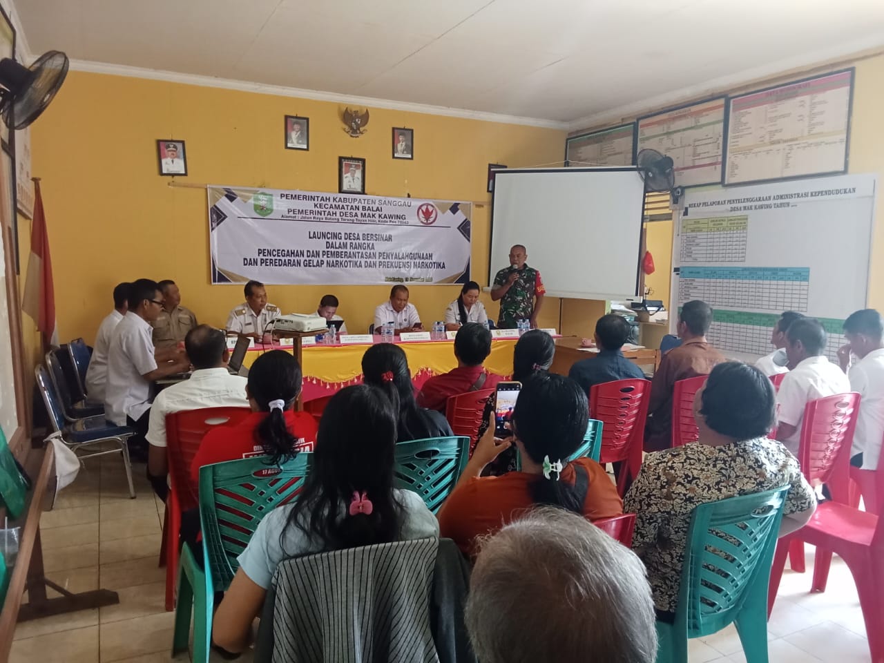 ‎Sanggau — Babinsa Koramil Balai Sertu Hery Sarwono mewakili Danramil menghadiri kegiatan Launching Desa Bersinar (Bersih Narkoba) dalam rangka pencegahan dan pemberantasan penyalahgunaan serta peredaran gelap narkotika di wilayah Desa Makkawing. Acara tersebut berlangsung di Kantor Desa Makkawing, Kecamatan Balai, Kabupaten Sanggau, Rabu 19/11/2025.