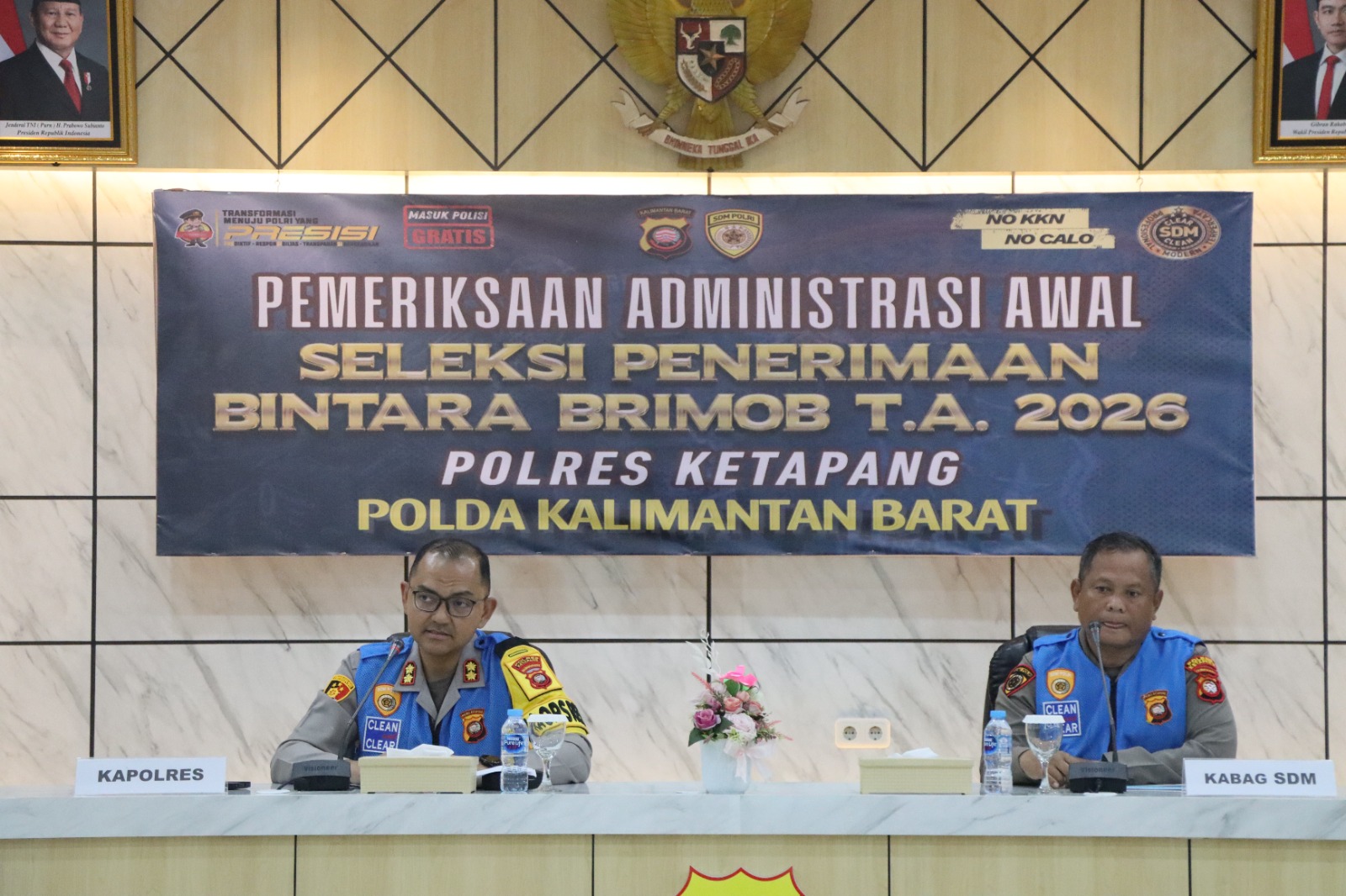 Kapolres Ketapang AKBP Muhammad Harris, S.H., S.I.K., M.I.K., CPHR menyampaikan bahwa pemeriksaan administrasi awal merupakan tahapan penting yang wajib dilalui oleh setiap peserta seleksi Bintara Brimob.