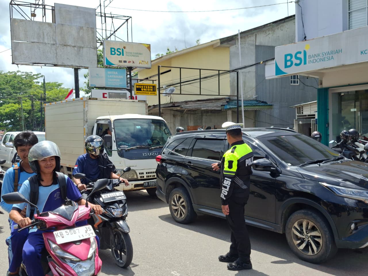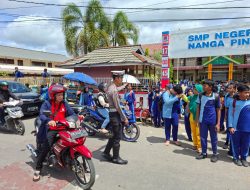 Melawi  – Dalam rangka mencegah terjadinya kemacetan dan meningkatkan kesadaran masyarakat tentang disiplin berlalu lintas, personil preventif Operasi Zebra Kapuas 2025 Polres Melawi melakukan pengaturan lalu lintas di titik rawan kemacetan, salah satunya di depan SMPN 1 Nanga Pinoh, Jumat (21/11/2025).