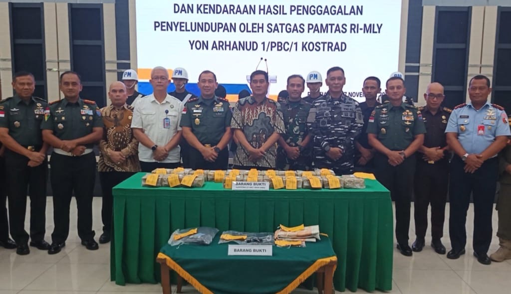 Barang haram seberat 21,9 Kg dan tiga pelaku WNI dengan inisial M, HP, dan AP diamankan oleh personel Satuan Tugas Pengamanan Perbatasan (Satgas Pamtas) Indonesia-Malaysia Yonarhanud 1/PBC Kostrad. Pada hari Minggu (23/11/2025) di wilayah Dusun Semang, Kecamatan Sekayam, Kabupaten Sanggau, sebuah lokasi strategis yang berdekatan dengan perbatasan negara.