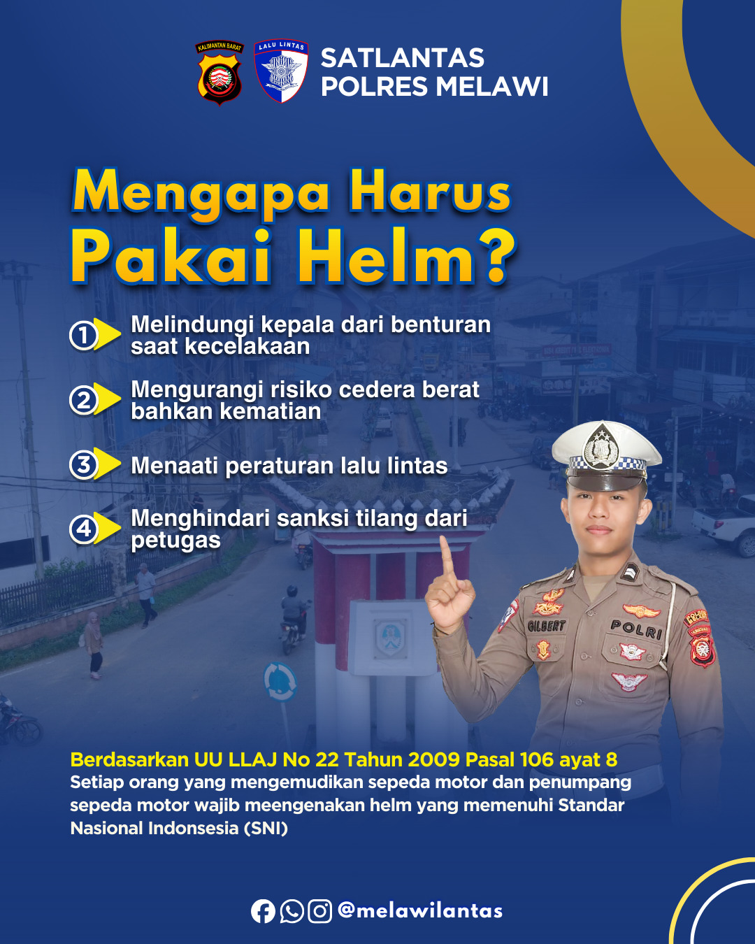 Kapolres Melawi, AKBP Harris Batara Simbolon, S.I.K., S.H., M.Tr.Ospla, mengatakan bahwa penggunaan helm SNI merupakan salah satu langkah penting dalam menjaga keselamatan diri sendiri dan orang lain.