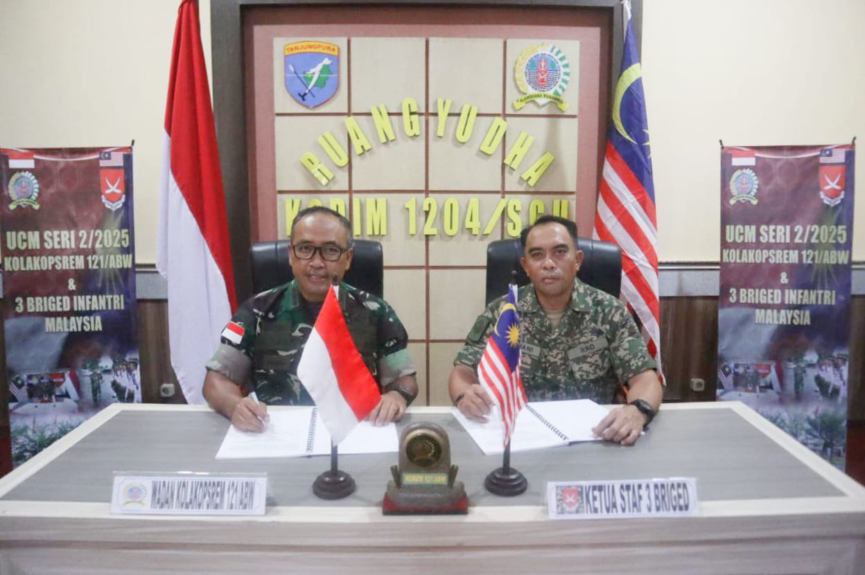 Sanggau – Dalam upaya memperkuat koordinasi dan menjaga perbatasan antara Indonesia dan Malaysia, Korem 121/ABW menggelar Unit Commander’s Meeting (UCM) seri 2 Tahun 2025 bersama Markas 3 Briged Tentera Darat Malaysia (TDM). Pertemuan ini berlangsung di Makodim 1204/Sanggau, Kalimantan Barat, Selasa (02/12/2025).