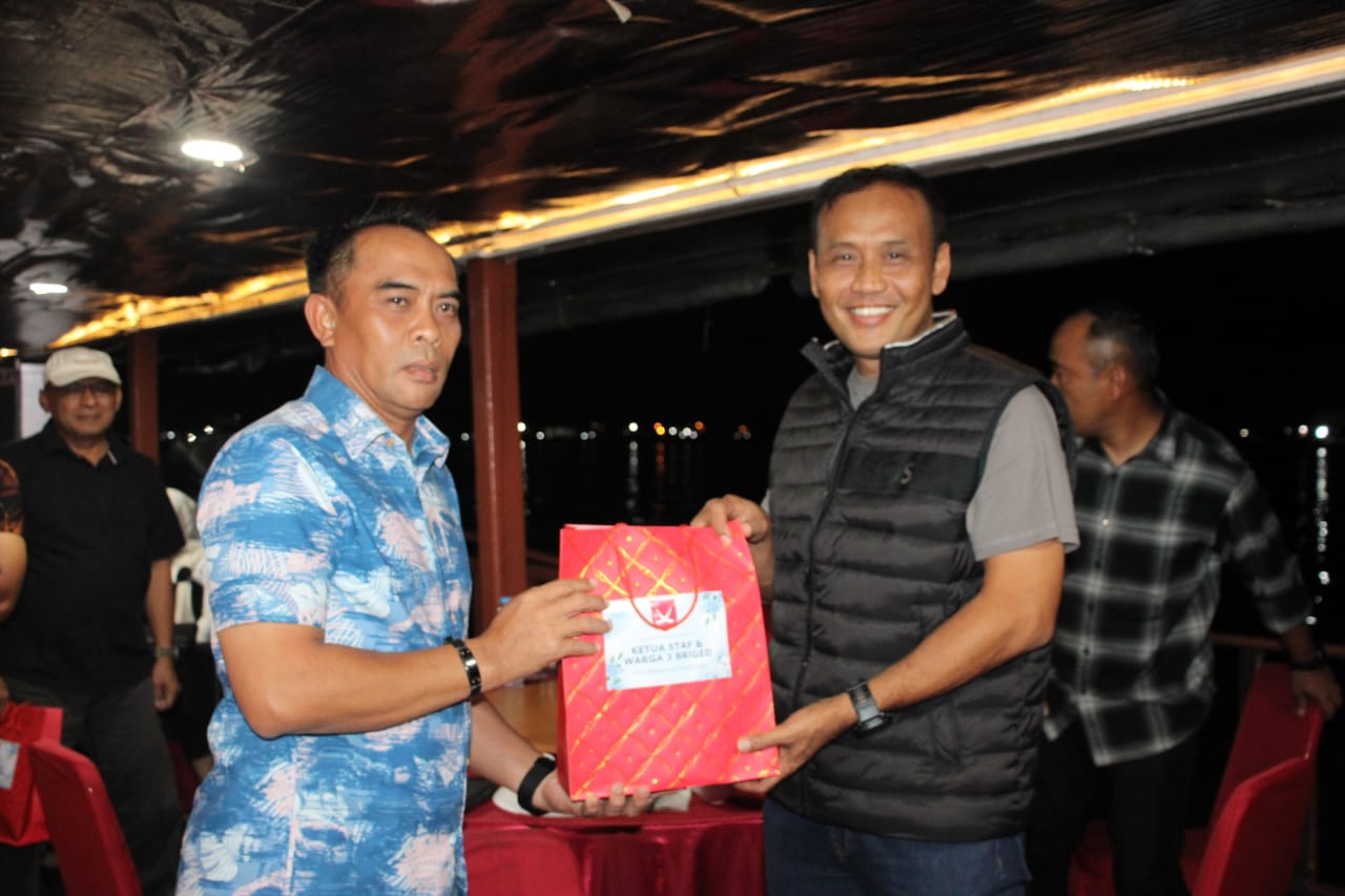 Pontianak – Danrem 121/Abw Brigjen TNI Purnomosidi, S.I.P., M.A.P., M.Han., selaku Dankolakopsrem 121/Abw hadiri makan malam bersama para pejabat Delegasi MK 3 Briged Infantri Malaysia, bertempat di Kapal Bandong-Bandong Pontianak, Kalimantan Barat, Rabu (03/12/2025) malam.