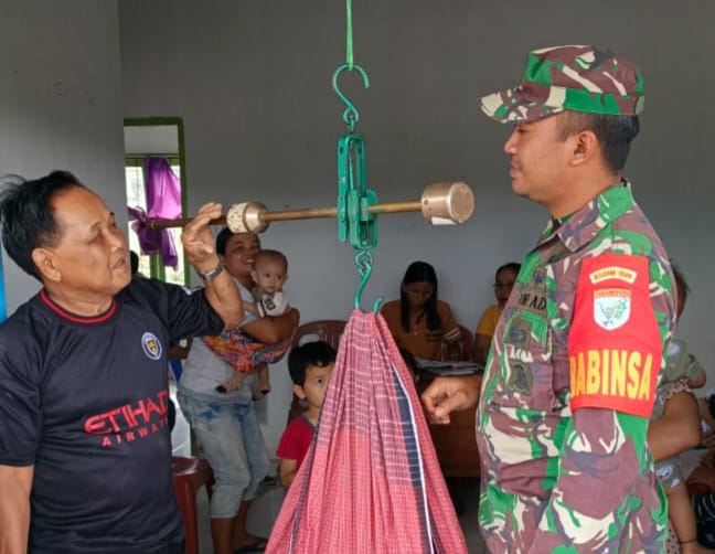 Bengkayang – Dalam upaya mewujudkan generasi balita yang sehat dan bebas stunting di wilayah binaannya, Kodim 1209/Bky secara aktif memberikan pendampingan pada kegiatan Pos Pelayanan Terpadu (Posyandu). Pendampingan ini merupakan wujud nyata kepedulian TNI terhadap kesehatan masyarakat, khususnya bagi ibu dan anak. Kehadiran personel TNI di lokasi Posyandu diharapkan mampu meningkatkan partisipasi masyarakat serta memastikan pelayanan kesehatan berjalan optimal yang bertempat di Aula Kantor Ds. Cipta Karya Kec. Sungai Betung Kab. Bengkayang.