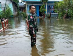 Sambas – Babinsa Koramil 03/Tebas Kopda Irwan Periyadi melakukan monitoring wilayah binaan yang terdampak banjir akibat intensitas hujan tinggi yang melanda wilayah Kecamatan Tebas dan sekitarnya, Senin (8/12/25).