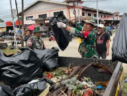 Sanggau – Pasi ops(Perwira seksi Oprasional) kapten inf abdul aziz siregar kodim 1204/Sanggau bersama anggota kodim 1204/sanggau melaksanakan kegiatan kerja bakti bersama Polres sanggau,YONIF TP 833/BD dan warga setempat, di pasar Sentral,Kecamatan Kapuas,Kabupaten Sanggau.