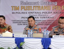 “Pertama-tama kami ucapkan selamat datang kepada Tim Puslitbang Polri di Kabupaten Sintang. Kehadiran tim dalam rangka penelitian ini tentu menjadi kehormatan bagi kami sekaligus momentum penting untuk bersama-sama mengevaluasi tantangan fungsi pembinaan, operasional, serta pelayanan Polri di lapangan,” ujar Kapolres.