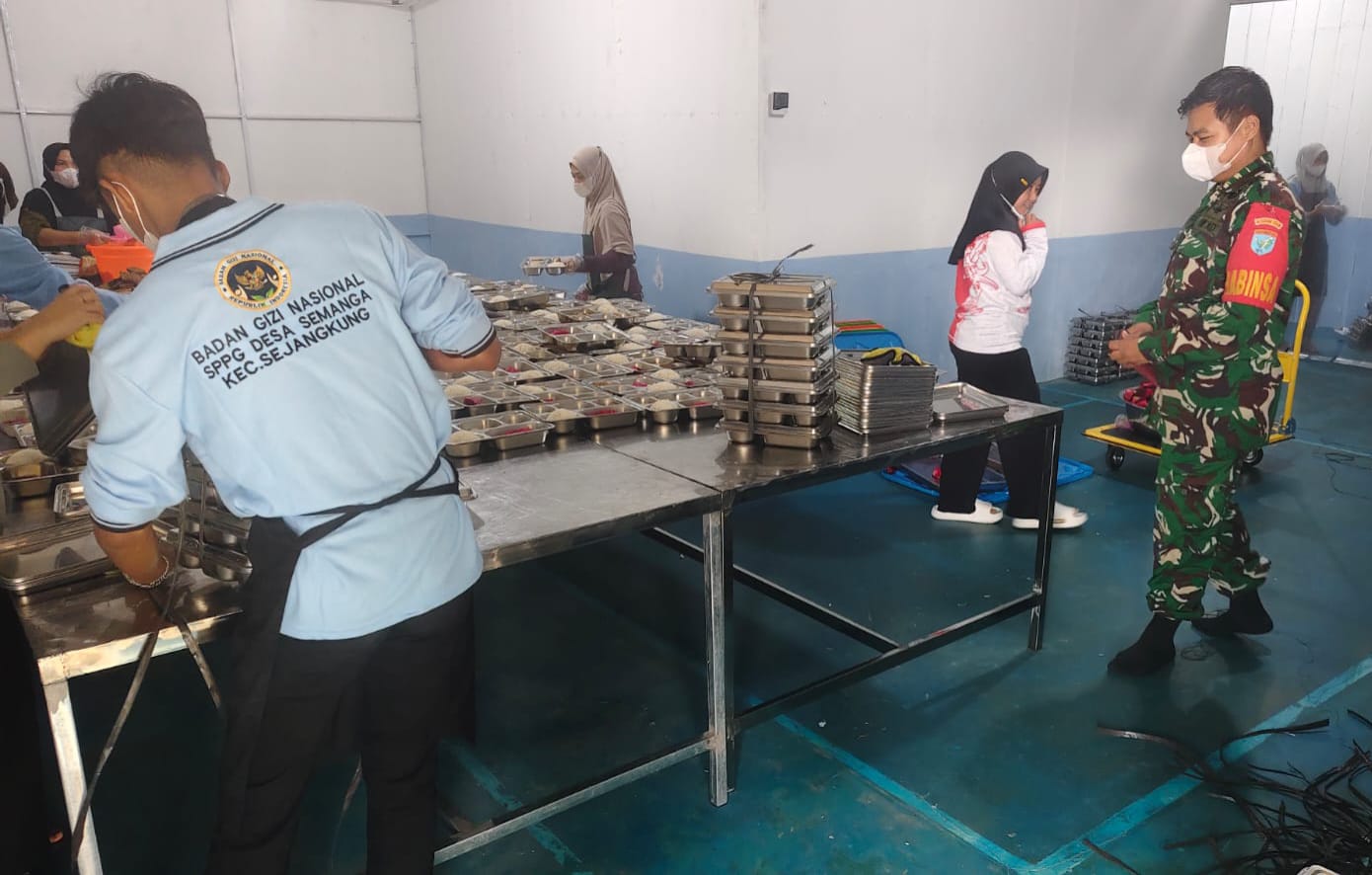 Sambas – Babinsa Desa Sebunga, Koramil 02/Sejangkung Serda M. Diyanto, melaksanakan pendampingan pendistribusian program Makan Bergizi Gratis (MBG) di wilayah binaannya, sebagai bentuk dukungan TNI AD terhadap program pemerintah dalam meningkatkan gizi dan kesehatan masyarakat, khususnya anak-anak dan kelompok rentan yang di gelar di Desa Selatan, Kec. Sajingan Besar, Kab. Sambas, Selasa (16/12/25).