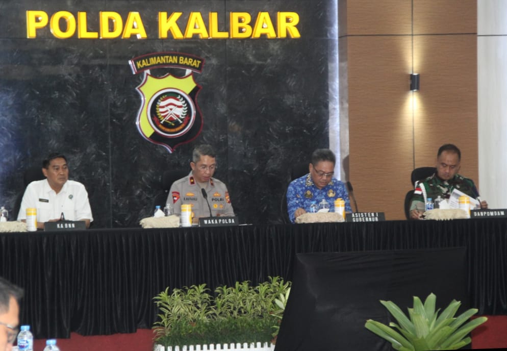 Rapat koordinasi tersebut turut dihadiri oleh Kepala BNNP Kalbar Brigjen Pol Totok Lisdiarto S., S.I.K., S.H., M.H., Danpomdam XII/Tanjungpura Kolonel Cpm Sony Yusdarmoko, S.H., M.Si. (Han), serta Asisten I Pemerintah Provinsi Kalbar Y. Anthonius R., S.E., M.Si. Kehadiran lintas sektor ini menegaskan komitmen bersama dalam menjaga stabilitas keamanan di Kalimantan Barat.