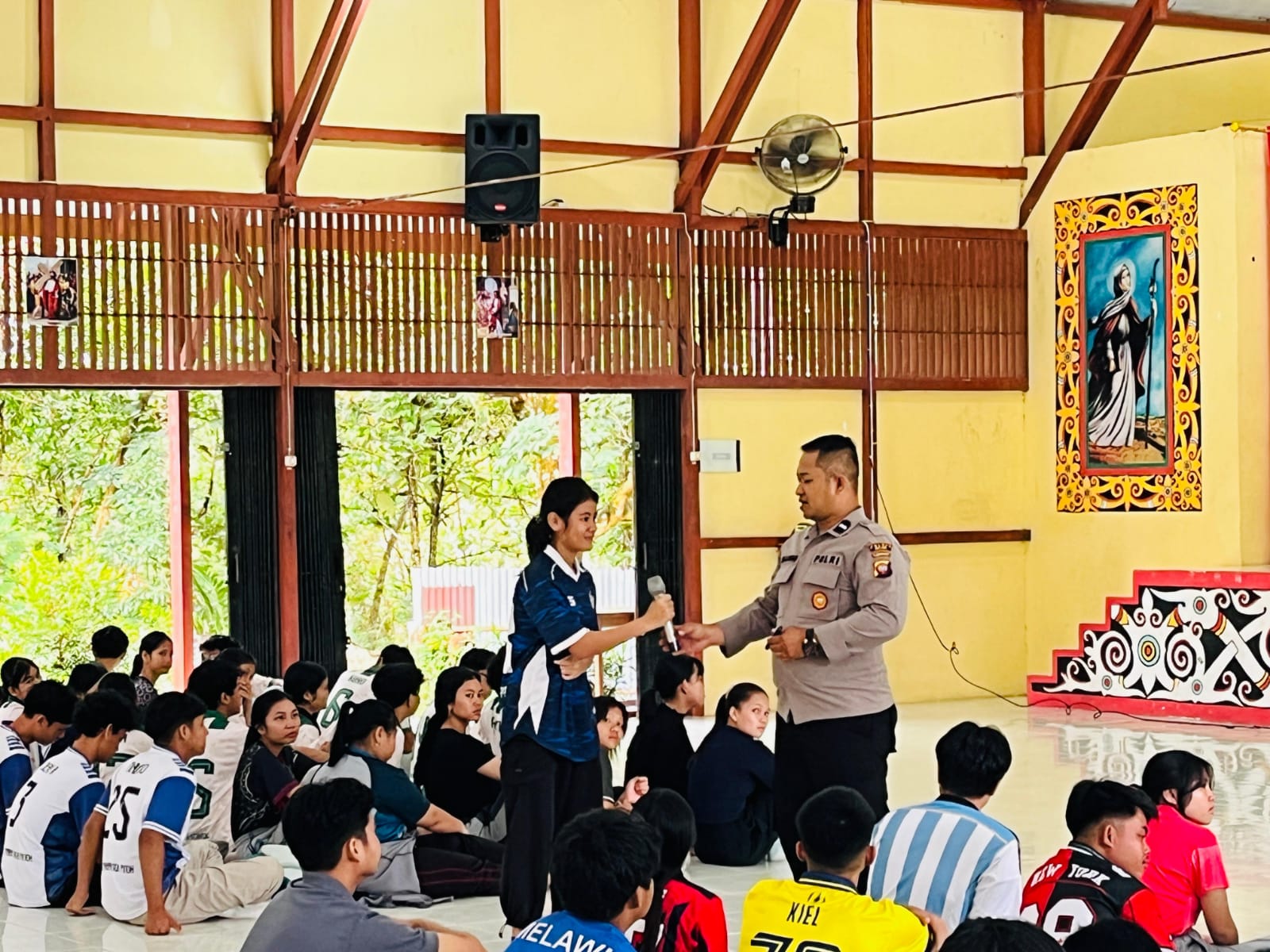 Melawi – Sat Binmas Polres Melawi melaksanakan kegiatan penyuluhan tentang bahaya judi online dan kenakalan remaja kepada para pelajar SMA Santa Maria, Kecamatan Nanga Pinoh.