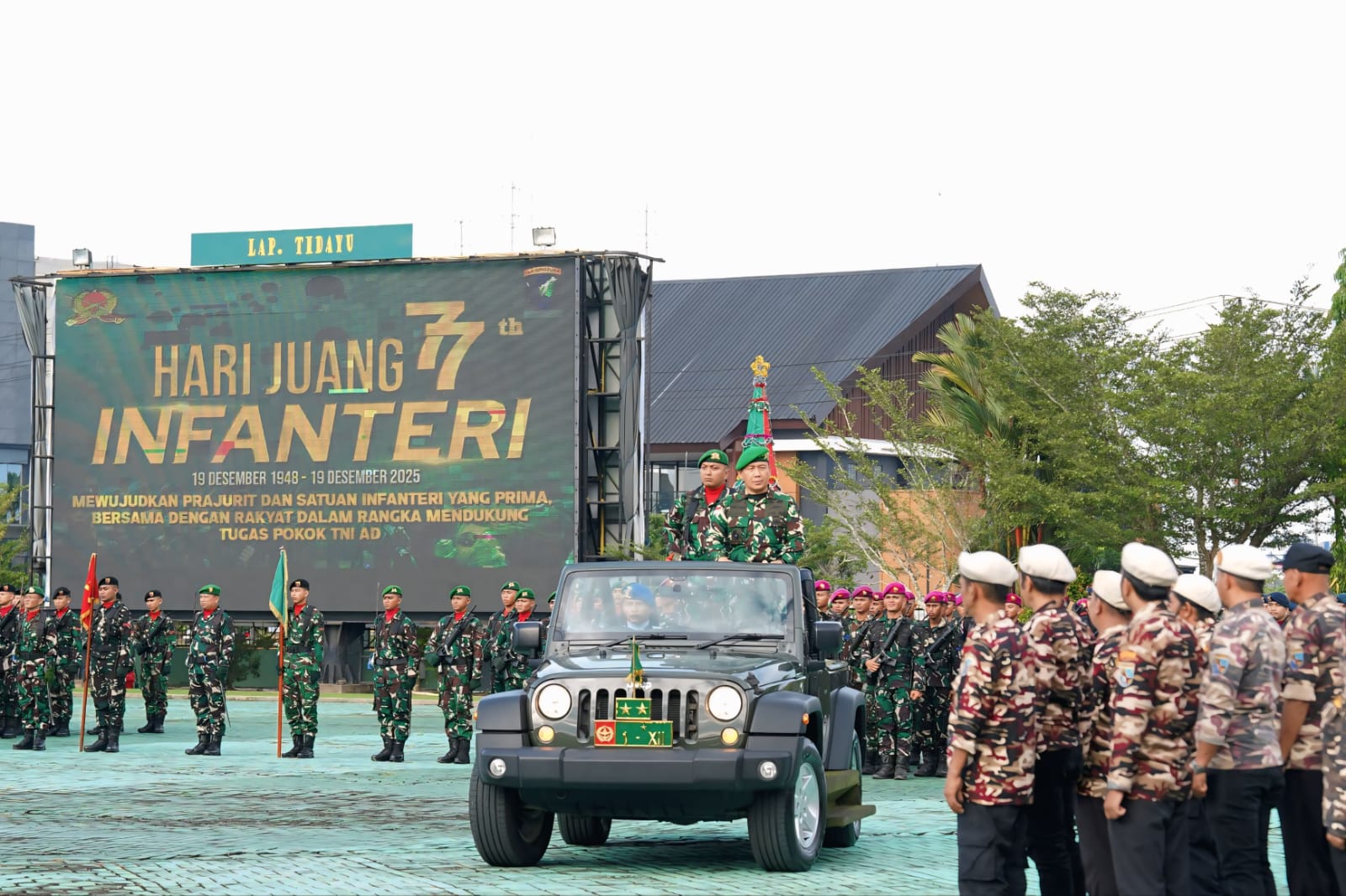 Piala Lomba Gerak Jalan Peleton Beranting (Tonting) Yudha Wastu Pramuka Jaya (YWPJ) di serahkan langsung oleh Panglima Kodam XII/Tpr Mayor Jenderal TNI Jamallulael, S.Sos., M.Si., sekaligus menutup Lomba Peleton Beranting Yudha Wastu Pramuka Tahun 2025, bertempat di Lapangan Tidayu Kodam XII/Tpr, Kubu Raya, Kalimantan Barat, Jumat (19/12/2025).