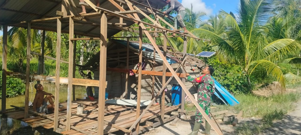 Sambas – Wujud kepedulian terhadap warga binaan terus ditunjukkan oleh Babinsa Koramil 04/Jawai Kodim 1208/Sambas Kopdar Herdianto. Salah satunya dengan membantu warga dalam pembangunan rumah di Desa ASarang Burung Usrat, Kecamatan Jawai, Kabupaten Sambas, sebagai bentuk kemanunggalan TNI dengan rakyat, Sabtu (20/12/25).