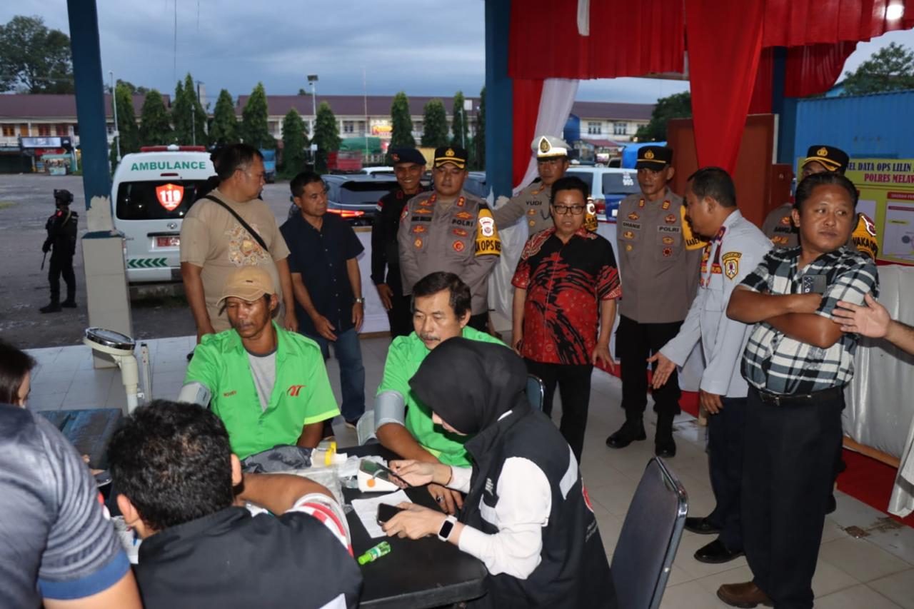 Kapolres Melawi tampak berdialog langsung dengan para sopir bus, memberikan semangat sekaligus mengingatkan pentingnya menjaga kondisi kesehatan sebelum melakukan perjalanan jauh. Pemeriksaan meliputi pengecekan tekanan darah, kondisi fisik, serta kesiapan pengemudi dalam menjalankan tugas.