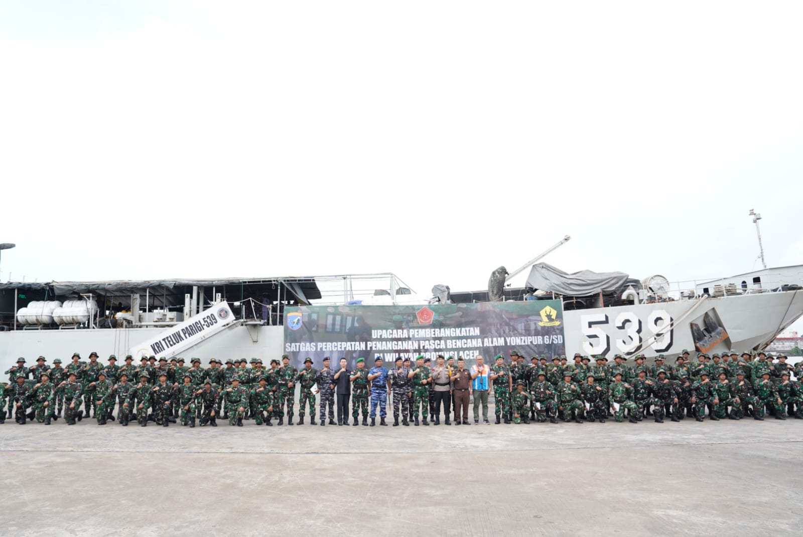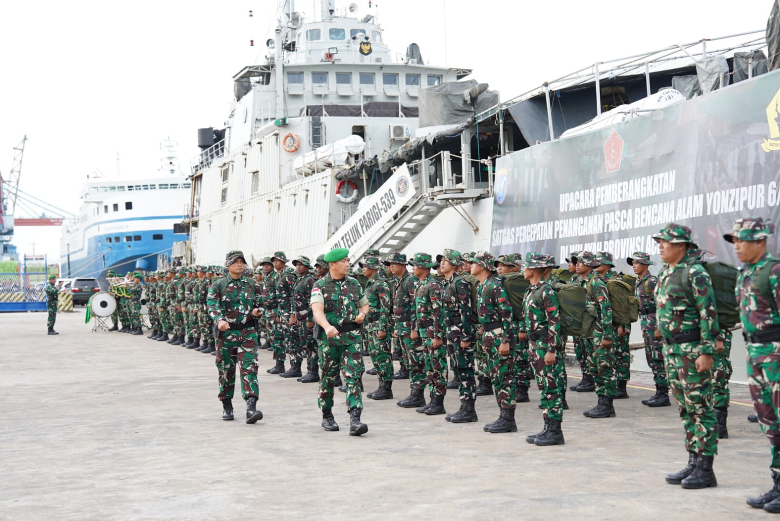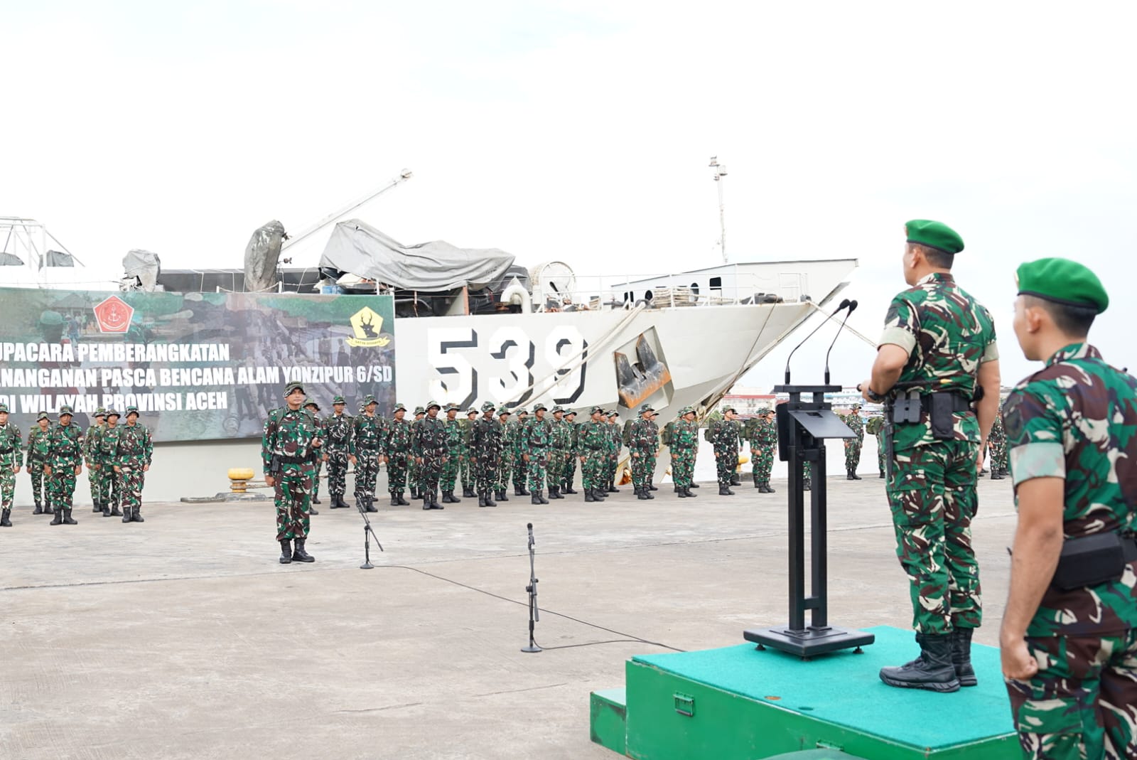 Pontianak – Pangdam XII/Tanjungpura, Mayjen TNI Jamallulael, S.Sos., M.Si., secara resmi melepas keberangkatan personel Satuan Tugas (Satgas) Percepatan Penanggulangan Bencana Alam dari Batalyon Zeni Tempur 6/Satya Digdaya (Yonzipur 6/SD) menuju Pulau Sumatera. Upacara pelepasan berlangsung khidmat di Dermaga Pelabuhan Dwikora, Kota Pontianak, pada Selasa (23/12/2025) sore kemaren.