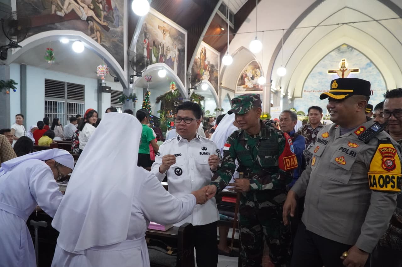 Sambas – Dalam rangka memastikan pelaksanaan perayaan Natal Tahun 2025 berjalan aman dan kondusif, Komandan Kodim 1208/Sambas bersama Kapolres Sambas mendampingi Bupati Kabupaten Sambas meninjau langsung pengamanan perayaan Natal di sejumlah gereja, Rabu malam (24/12/2025).