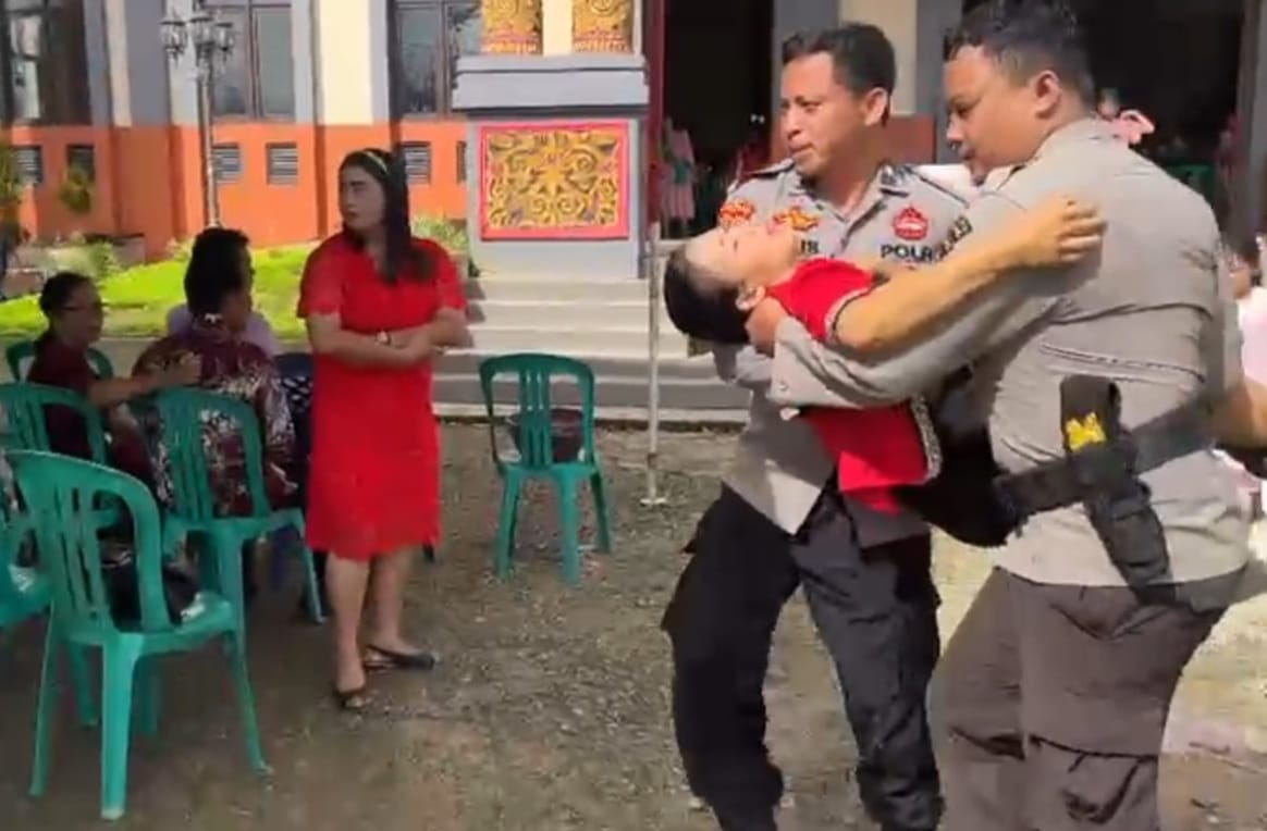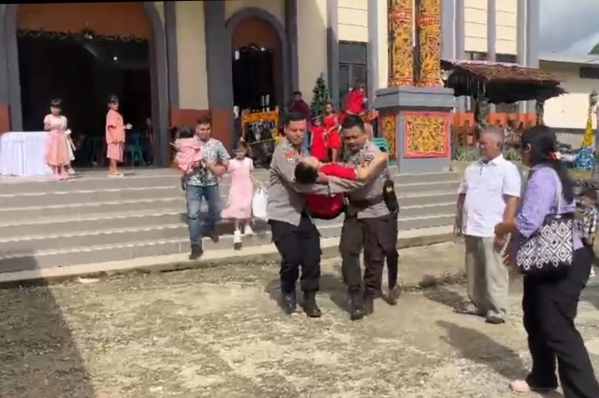 Peristiwa tersebut terjadi di tengah berlangsungnya ibadah Natal yang dihadiri ratusan jemaat. Saat suasana ibadah berlangsung khidmat, salah satu jemaat mendadak kehilangan kesadaran. Melihat kejadian itu, personel Polres Landak yang berjaga di sekitar gereja langsung bergerak cepat mendatangi lokasi.