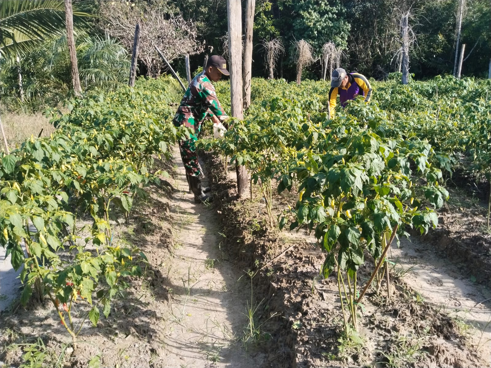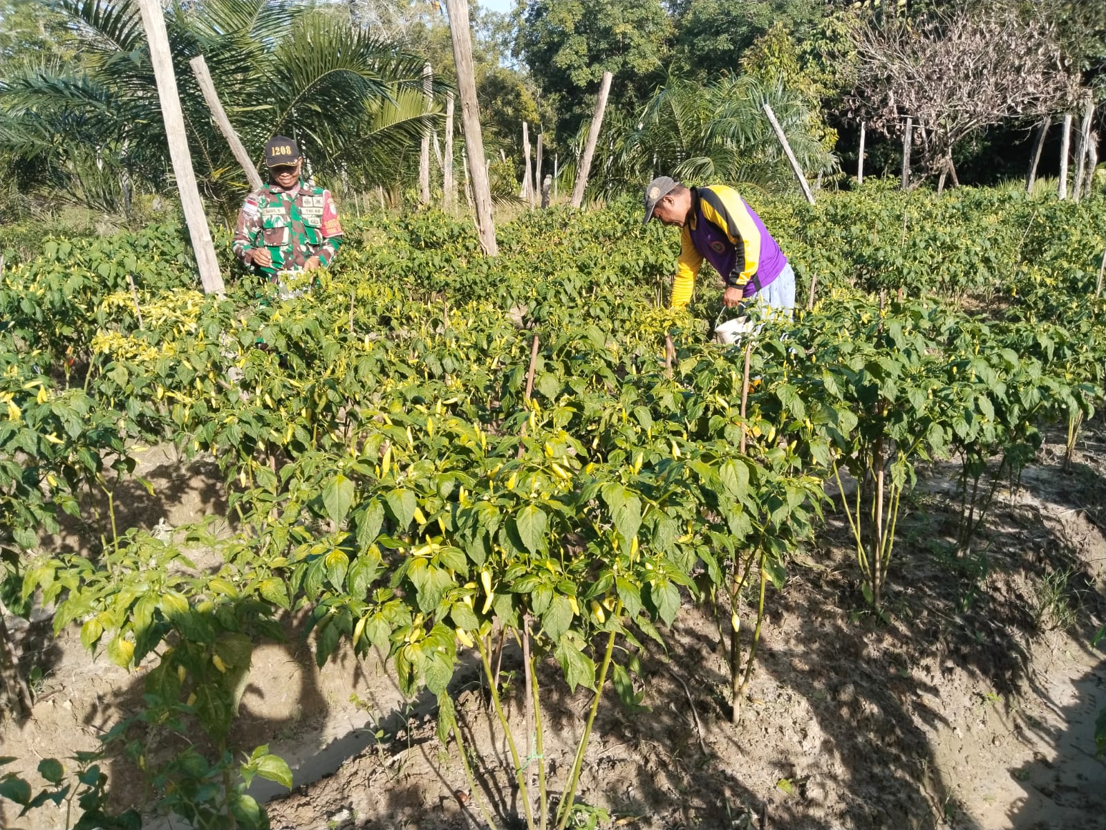 Sambas – Komitmen TNI Angkatan Darat dalam menjaga stabilitas pangan nasional terus dibuktikan hingga ke pelosok desa. Di Kabupaten Sambas, Babinsa Koramil 1208-08/Paloh, Serda Sigit Setiawan, terjun langsung ke lahan pertanian untuk mendampingi petani cabai di Desa Malek, Kecamatan Paloh, Jumat (26/12/2025).