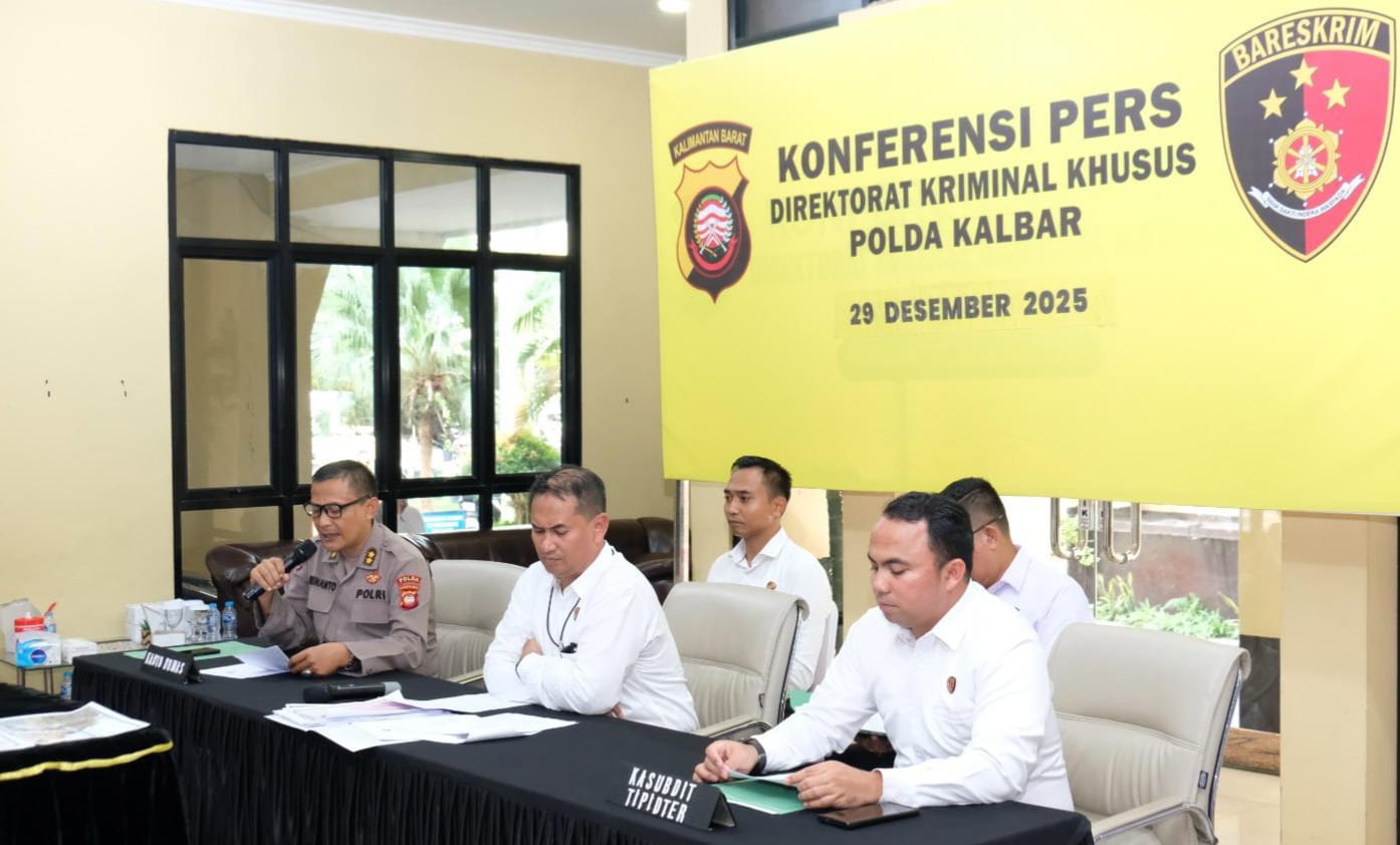 Pontianak – Kepolisian Daerah Kalimantan Barat melalui Direktorat Reserse Kriminal Khusus terus mengintensifkan penindakan terhadap aktivitas Penambangan Emas Tanpa Izin (PETI). Sepanjang periode 1 Juli hingga 28 Desember 2025, Ditreskrimsus Polda Kalbar berhasil mengungkap sejumlah kasus tindak pidana pertambangan mineral dan batubara di berbagai wilayah Kalbar.Sabtu 29/12/2025.