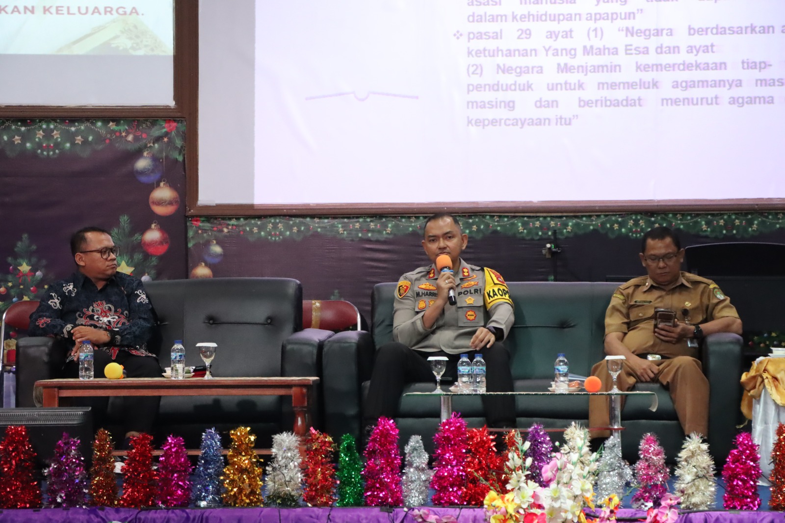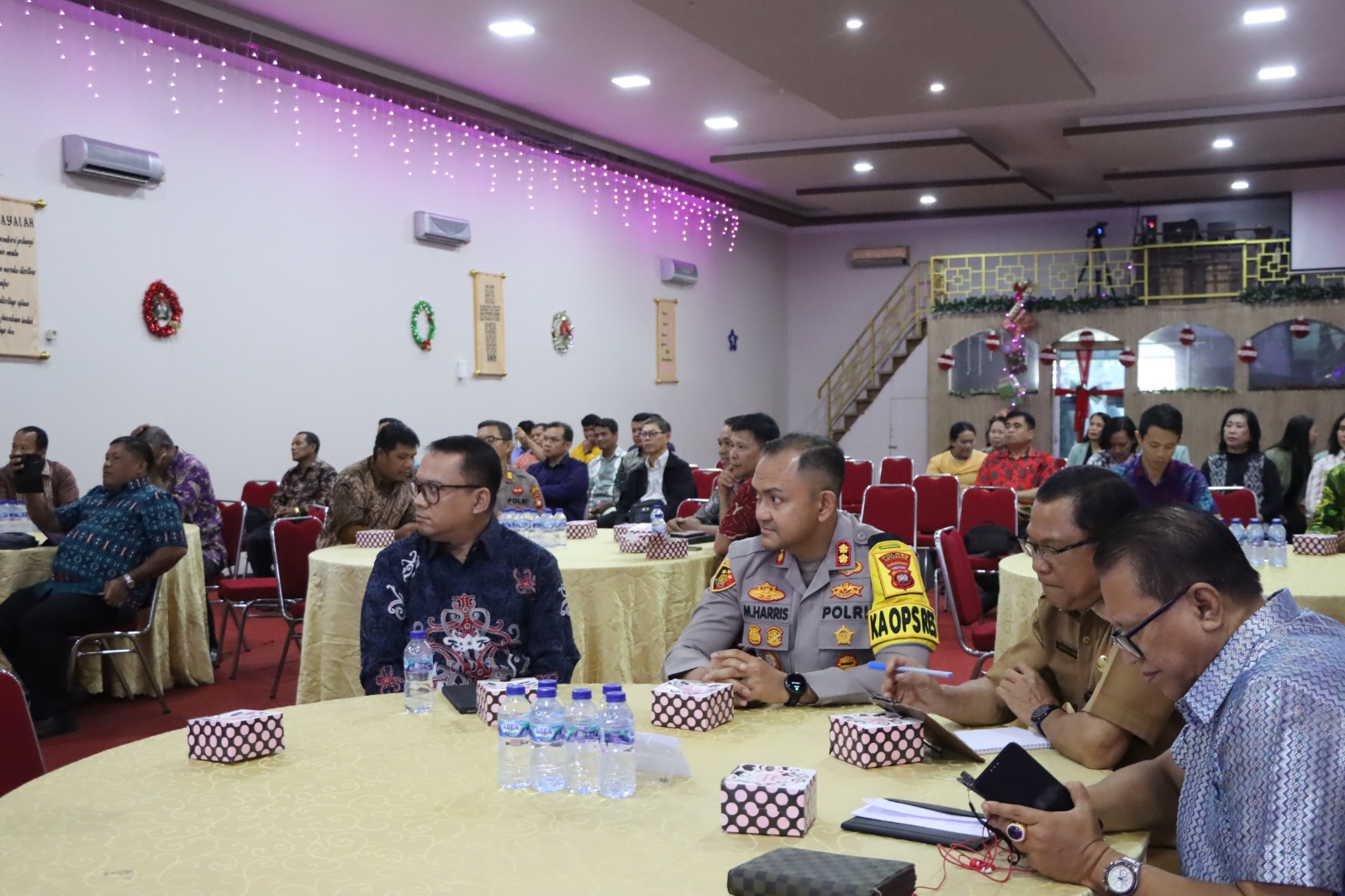 Ketapang – Kapolres Ketapang AKBP Muhammad Harris, S.H., S.I.K., M.I.K., CPHR menghadiri kegiatan Rapat Kerja dan Natal Bersama Persatuan Gereja Kristen (PGK) Ketapang yang mengusung tema “Fondasi Terciptanya Kerukunan Dalam Masyarakat (Ditinjau Dari Sudut Pandang Polisi Sebagai Aparat Keamanan Masyarakat)”. Kegiatan tersebut berlangsung dengan penuh khidmat, hangat, dan sarat nilai kebersamaan, pada Senin (29/12/2025).