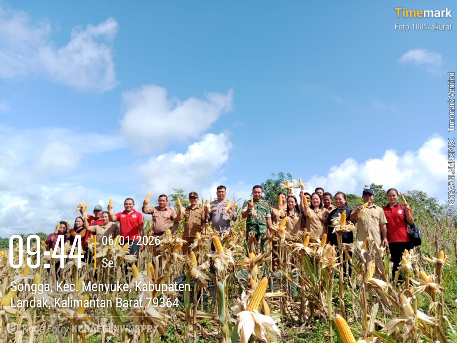 Landak – Panen perdana tanaman jagung 1 Desa 1 Hektar di Desa Songga Kecamatan Menyuke Kabupaten Landak. Kegiatan panen perdana pada hari ini Selasa tanggal 06 Januari 2026 sekitar Pukul 08.00 wib s/d Selesai.