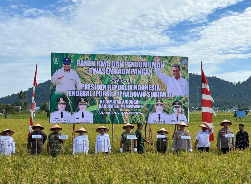 Mempawah – Provinsi Kalimantan Barat turut menjadi saksi sejarah pengumuman kembalinya status Swasembada Pangan Indonesia. Hal ini ditandai dengan kegiatan Panen Raya serentak yang diikuti secara virtual oleh jajaran Forkopimda Kalimantan Barat bersama Presiden Republik Indonesia di Saung Pok Tan Subur, Kelurahan Anjungan Melancar, Kecamatan Anjongan, Kabupaten Mempawah. (Rabu, 7/1/2026).