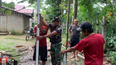 Sambas – Danramil 1208-07/Teluk Keramat Kapten Inf Waniran mendampingi Tim Badan Keuangan dan Aset Daerah (BKAD) Provinsi Kalimantan Barat dalam kegiatan pengecekan lahan rencana pembangunan Koperasi Desa/Kelurahan Merah Putih yang berlokasi di Desa Sungai Serabek, Kecamatan Teluk Keramat, Kabupaten Sambas, Kamis (08/01/26).