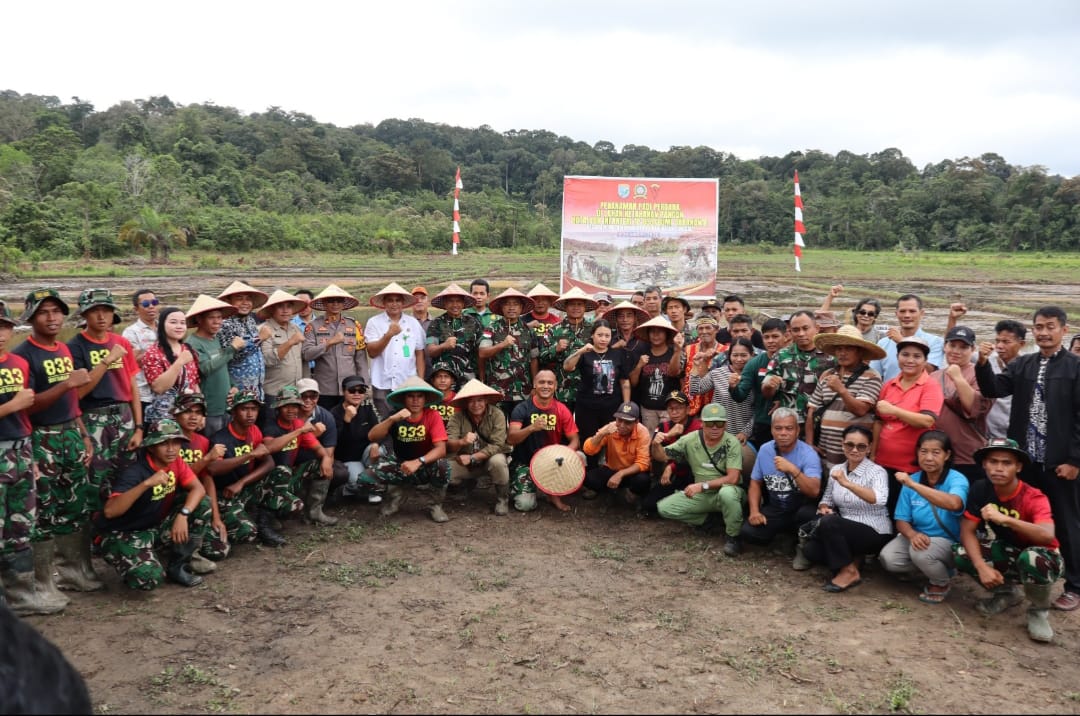 Sanggau – Kasrem 121/Abw Kolonel Inf Dadang Ismai Marzuki, S.I.P., tanam padi perdana di Lahan Ketahanan Pangan Batalyon Infanteri TP 833/Bumi Daranante seluas 4,2 Hektar yang terletak di Desa Lape, Kecamatan Kapuas, Kabupaten Sanggau, Kalimantan Barat, Kamis (08/01/2026).