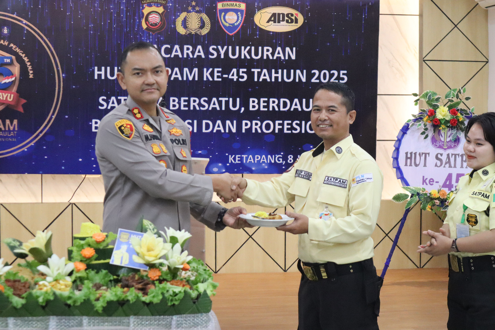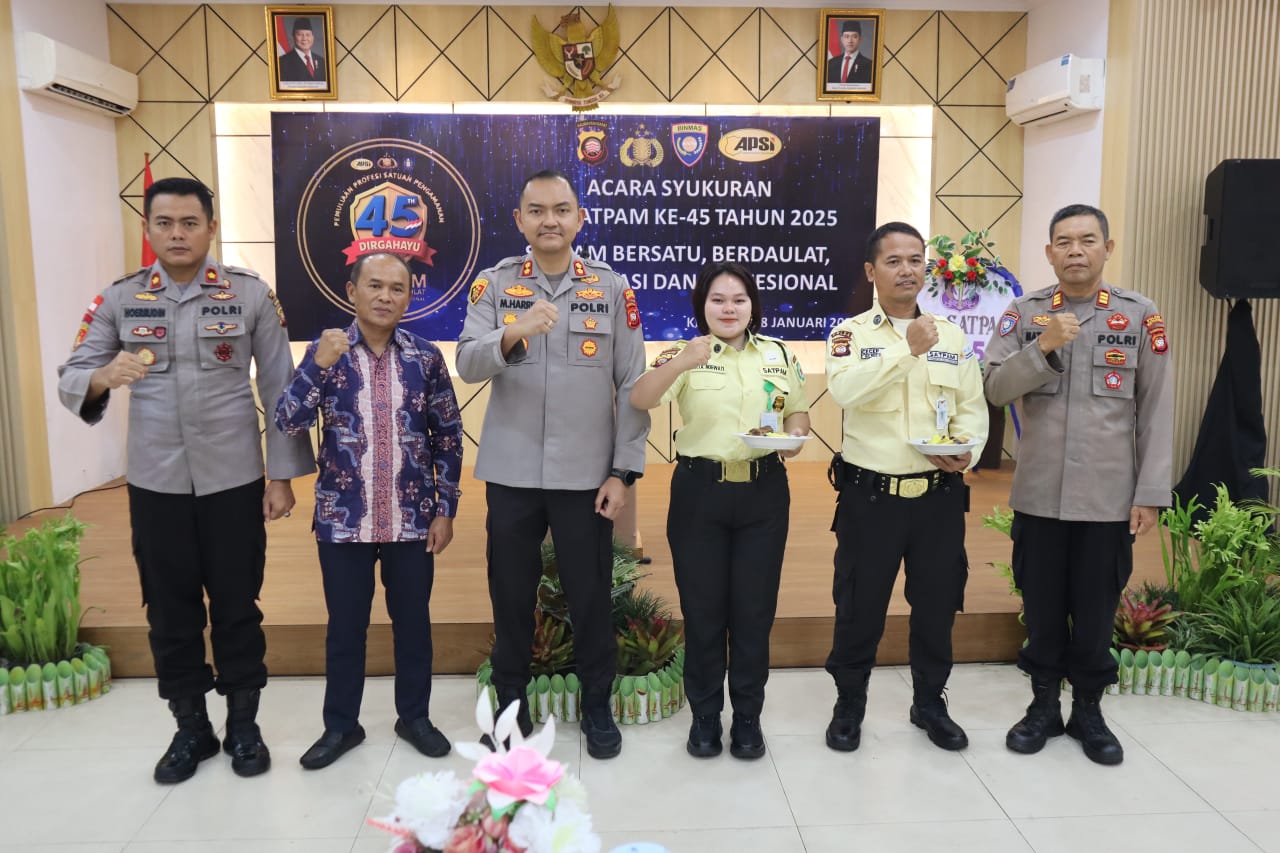 Ketapang– Kapolres Ketapang AKBP Muhammad Harris, S.H., S.I.K., M.I.K., CPHR bersama Pejabat Utama (PJU) Polres Ketapang menghadiri acara Syukuran Hari Ulang Tahun (HUT) Satuan Pengamanan (Satpam) ke-45 Tahun 2025 yang dilaksanakan di Aula Mapolres Ketapang, Kamis 08 Januari 2026.