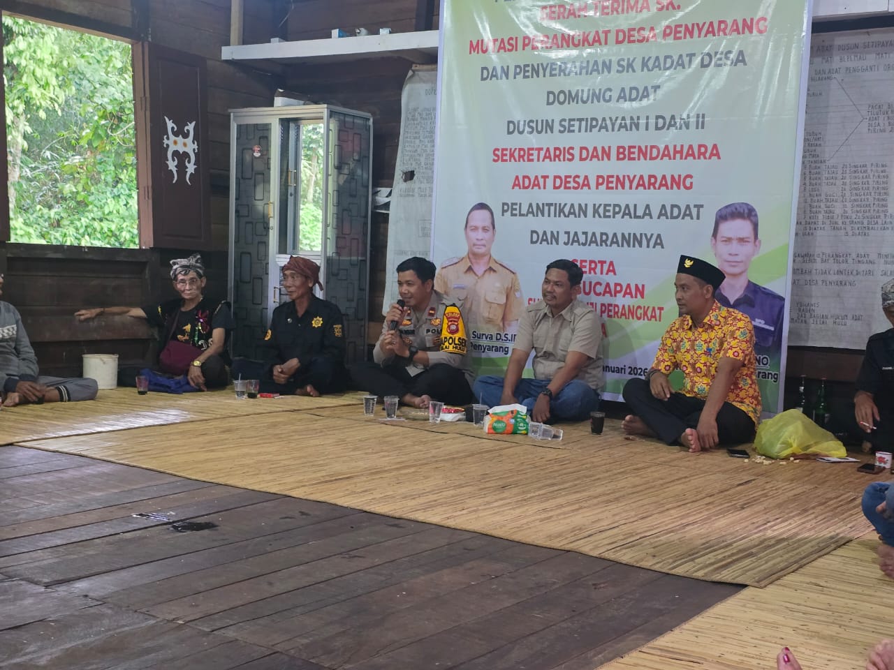 Ketapang – Dalam rangka mempererat silaturahmi serta menjaga situasi keamanan dan ketertiban masyarakat (kamtibmas), Kapolsek Jelai Hulu Ipda Zaenal Mutakhir, S.H. bersama Kanit Binmas Polsek Jelai Hulu melaksanakan kegiatan sambang tokoh masyarakat dan tokoh adat, bertempat di Rumah Adat Desa Penyarang, Kecamatan Jelai Hulu, Kabupaten Ketapang, Kamis 08 Januari 2026.