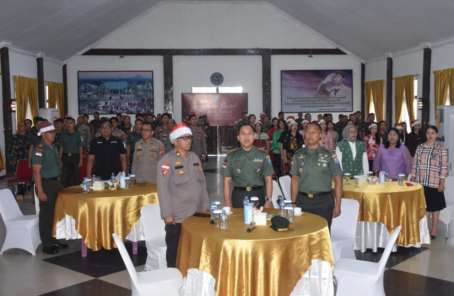“Selamat Natal dan Tahun Baru. Semoga tahun baru ini membawa semangat baru untuk terus bekerja dan mengabdi, serta kegiatan seperti ini merupakan pembinaan mental Prajurit, serta dapat di jadikan momentum untuk memperkuat kasih dan perdamaian”.pungkasnya.