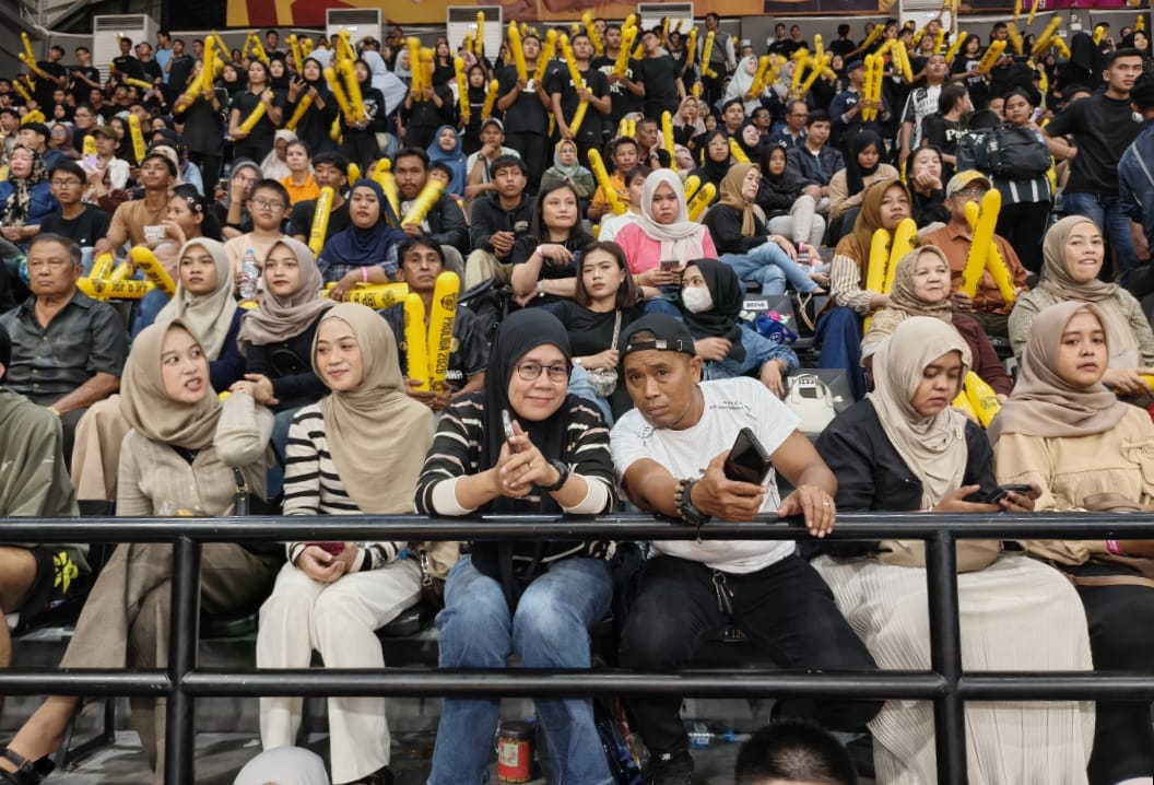 Kehadiran suporter dari kalangan ibu-ibu menjadi warna tersendiri dalam keriuhan di dalam gelanggang. Salah satunya adalah Sukinem (52), warga asal Sungai Raya yang datang bersama rombongan pengajiannya khusus untuk menonton aksi pemain idola mereka.