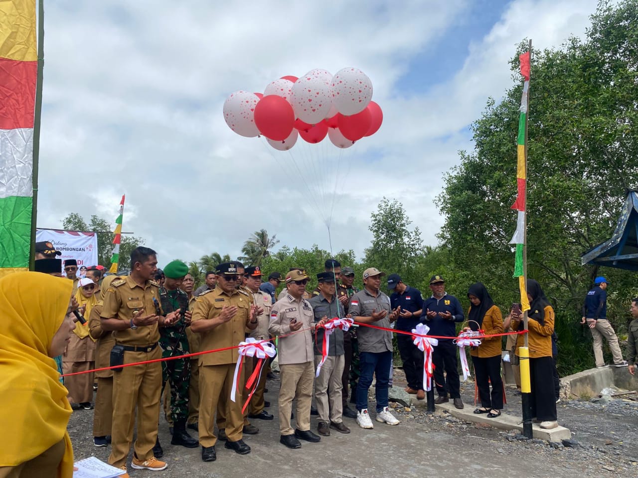 Sambas – Danramil 1208-04/Jawai bersama unsur Forum Koordinasi Pimpinan Daerah (Forkopimda) Kabupaten Sambas menghadiri sekaligus mendampingi kegiatan peresmian Jembatan Desa Ramayadi, Kecamatan Jawai, Selatan, Kabupaten Sambas, Senin (13/01/26).