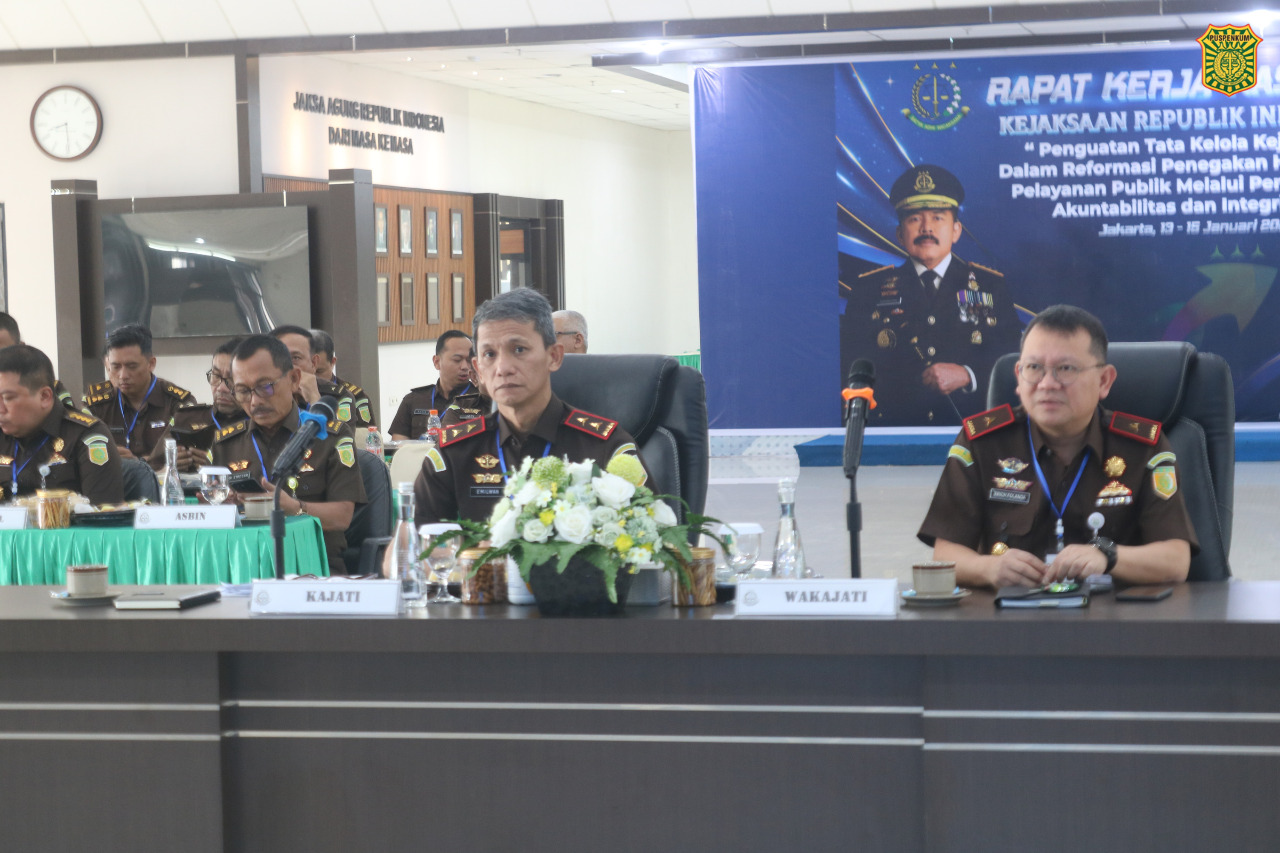Rakernas Kejaksaan Tahun 2026 secara resmi dibuka oleh Jaksa Agung Republik Indonesia ST. Burhanuddin, yang dalam sambutan pembukaan menyampaikan bahwa Rakernas merupakan forum strategis untuk melakukan evaluasi menyeluruh terhadap pelaksanaan tugas dan fungsi Kejaksaan, sekaligus sebagai sarana perumusan kebijakan dan langkah strategis ke depan. Rakernas tahun ini mengusung tema “Penguatan Tata Kelola Kejaksaan dalam Reformasi Penegakan Hukum dan Pelayanan Publik melalui Peningkatan Akuntabilitas dan Integritas.”