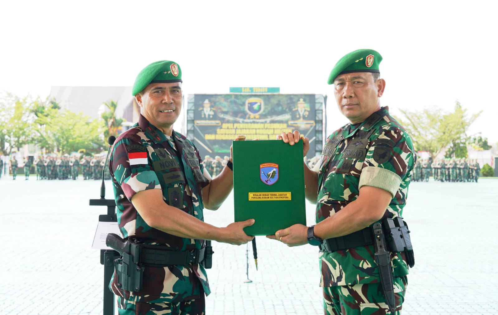 Prosesi penyerahan pasukan berlangsung khidmat, ditandai dengan penyerahan risalah dan pernyataan resmi serah terima di hadapan pasukan Kodam Tanjungpura. Dengan penyerahan ini, seluruh tugas strategis termasuk pengamanan wilayah perbatasan darat yang menjadi vitalitas wilayah Kalimantan Barat kini berada di bawah komando Mayjen TNI Novi Rubadi Sugito. S.I.P., M.Si.
