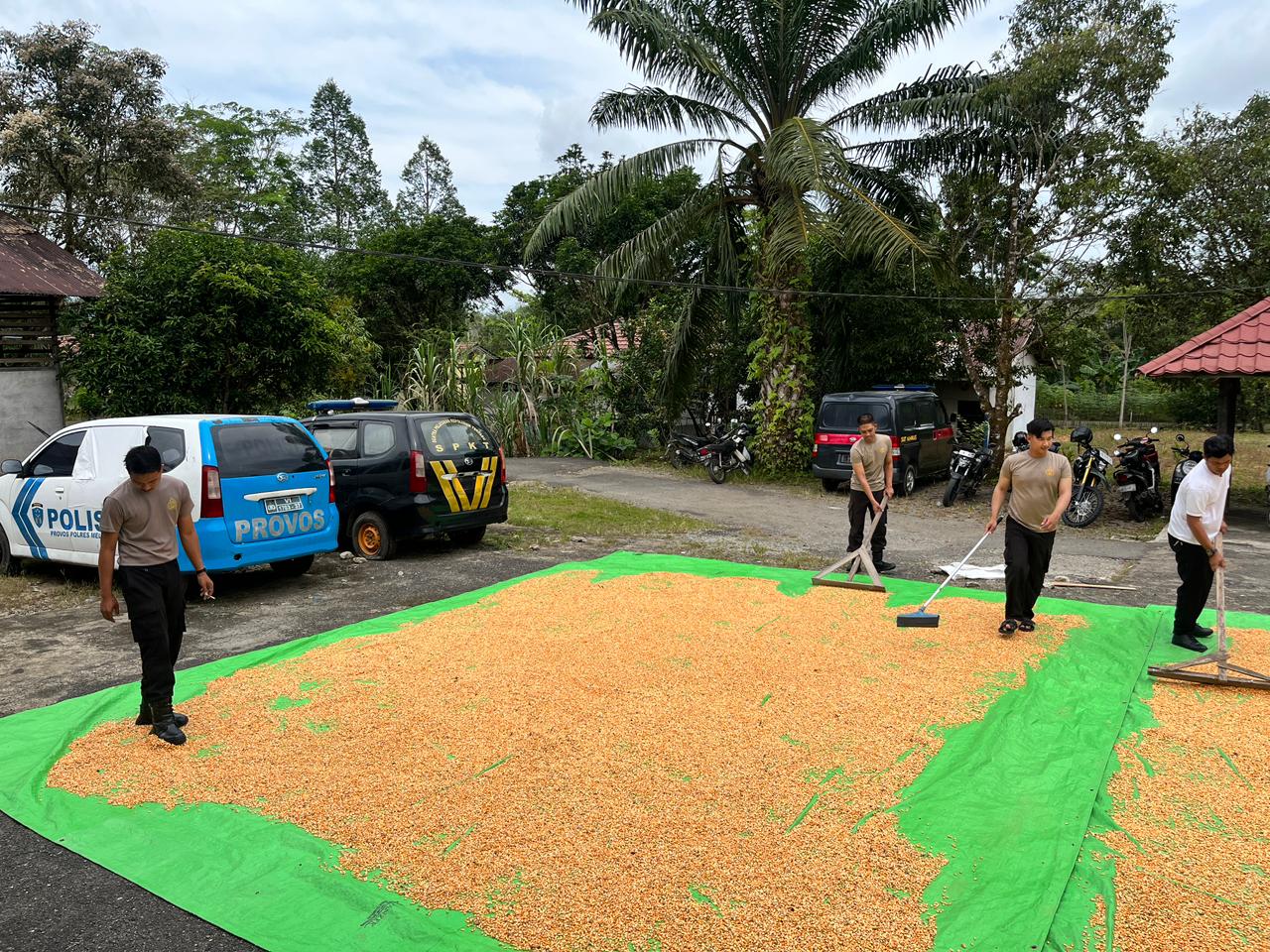 Dukung Ketahanan Pangan Personil Polres Melawi Lakukan Penjemuran Jagung Di Sela-sela Pekerjaan Kantor