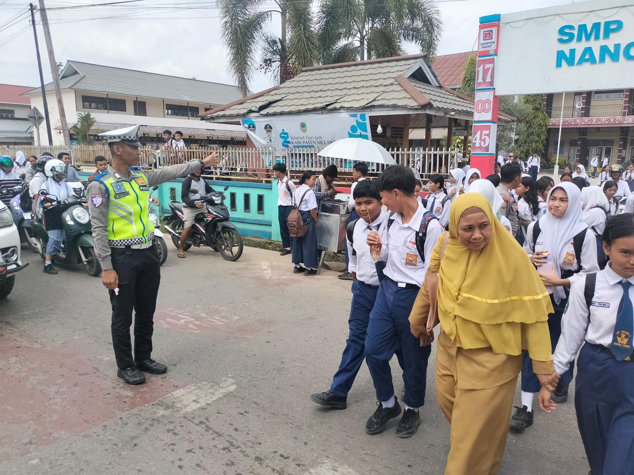 “Pada jam pulang sekolah, kami hadir memastikan kamseltibcar lancar menjadi prioritas utama,” terang AKP Pipit.