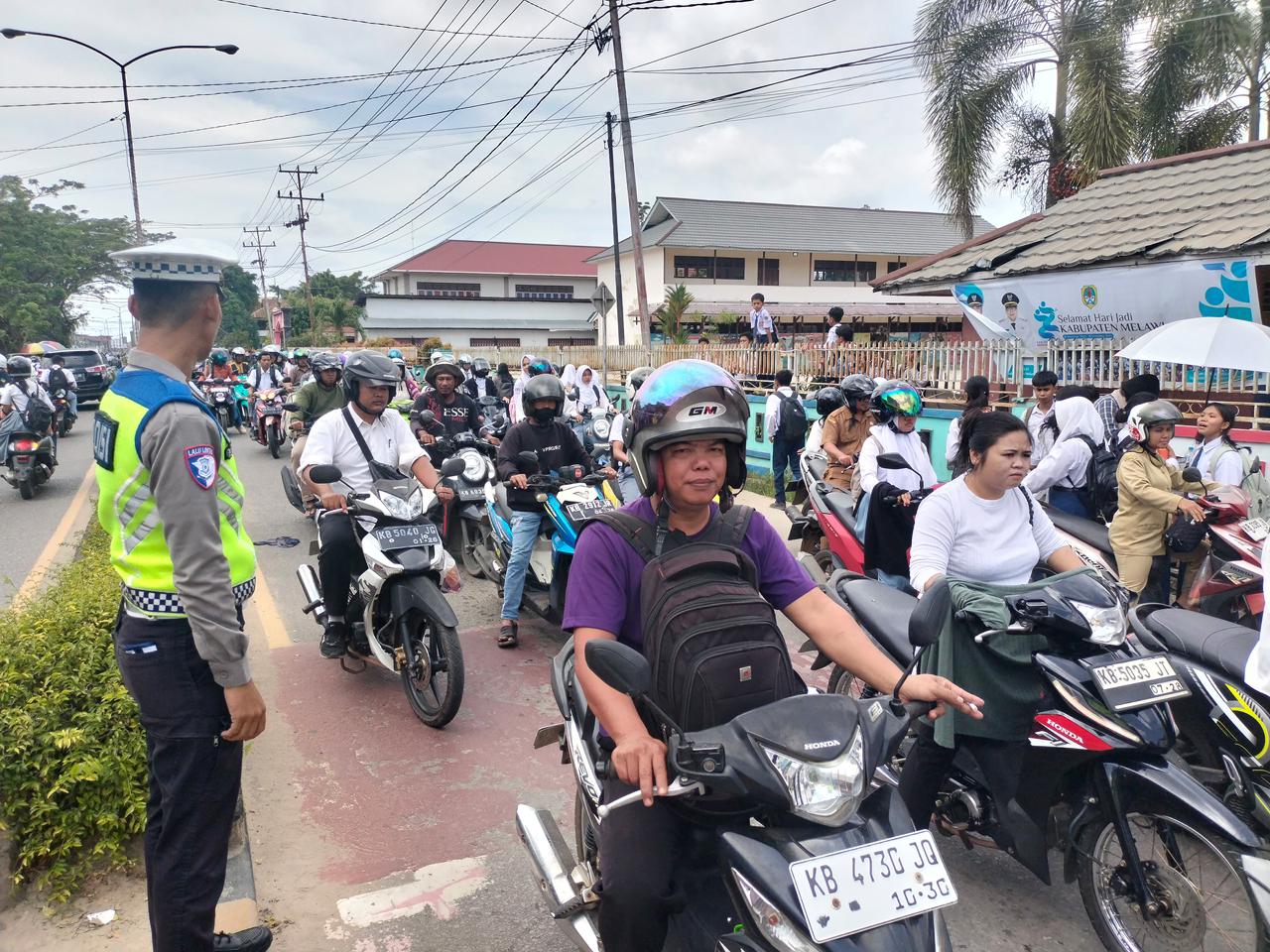 Kasat Lantas menghimbau kepada masyarakat pengguna jalan yang akan melakukan penjemputan putra putrinya agar selalu mematuhi arahan petugas dengan tidak memarkirkan kendaraan baik roda dua dan roda empat di bahu jalan yang dapat menyebabkan kemacetan dan perlambatan arus lalu lintas.