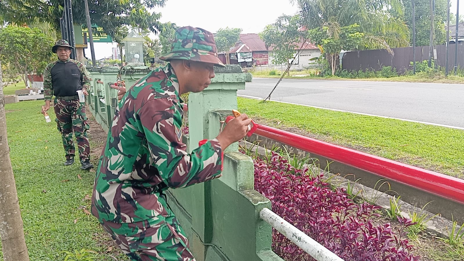 Singkawang – Anggota Makodim 1202/Singkawang melaksanakan kegiatan pembenahan pangkalan di lingkungan Makodim 1202/Skw yang berlokasi di Jalan Alianyang, Kelurahan Pasiran, Kota Singkawang, Senin (26/1/2026).