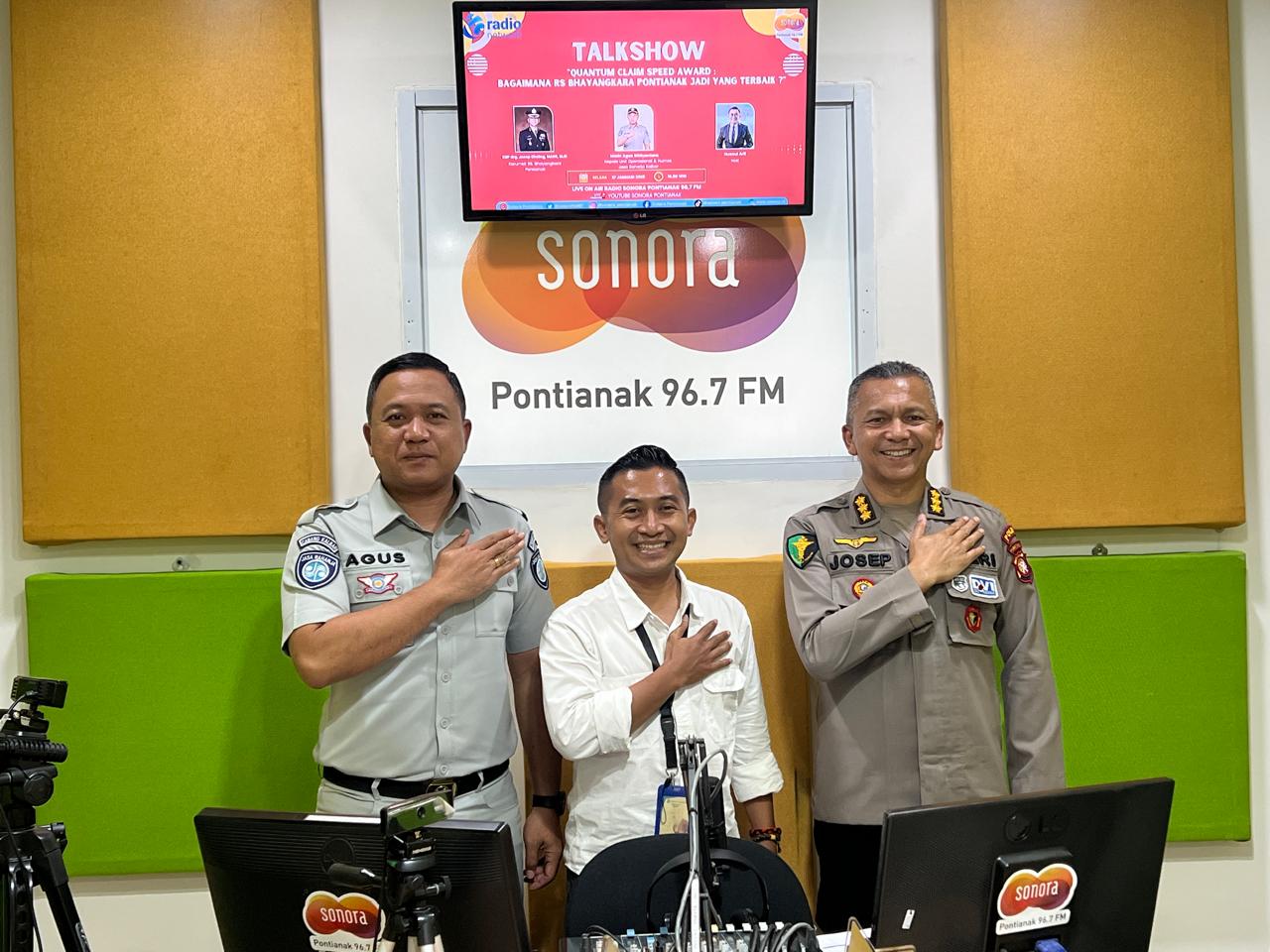 Dengan menghadirkan 2 narasumber yaitu Karumkit Bhayangkara Polda Kalbar Kombes Pol. drg. Josep Ginting, MARS., M.Si. serta Kepala Unit Operasional dan Humas Jasa Raharja Kalbar Made Agus Widyantara, talkshow ini memaparkan capaian RS Bhayangkara Pontianak yang berhasil masuk dalam 10 rumah sakit terbaik di Indonesia penerima penghargaan tersebut.