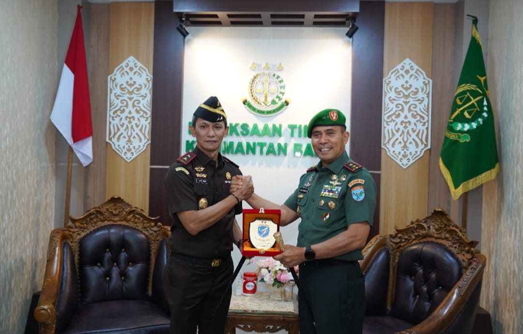 Tak hanya menemui Gubernur, Mayjen TNI Novi Rubadi Sugito melanjutkan silaturahminya ke Kantor Kejaksaan Tinggi Kalimantan Barat. Di sana, beliau disambut oleh Kepala Kejaksaan Tinggi (Kajati) Kalbar, Dr. Emilwan Ridwan, S.H., M.H. Pertemuan ini menjadi simbol soliditas antara institusi pertahanan dan penegakan hukum.