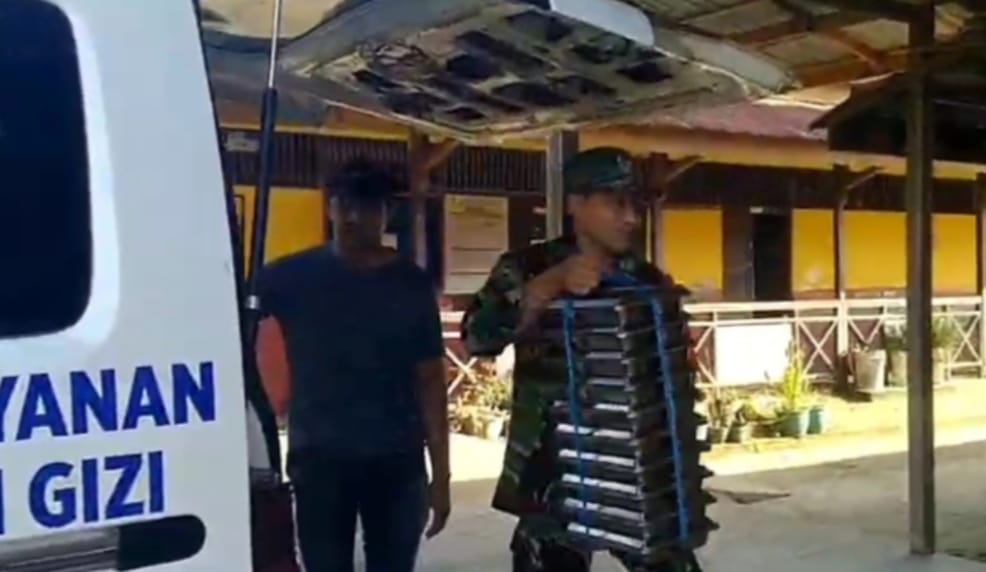 Sambas– Anggota Koramil 06/Selakau Kodim 1208/Sambas Sertu Luwiyanto melaksanakan pendampingan pendistribusian makanan bergizi gratis kepada Siswa di wilayah binaan, sebagai bentuk dukungan terhadap program pemerintah dalam meningkatkan gizi dan kesehatan masyarakat, khususnya anak-anak.