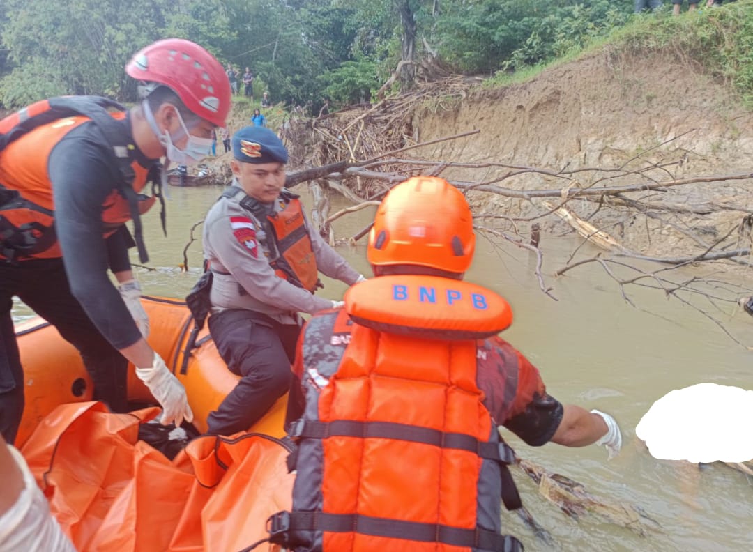 Sekitar pukul 14.50 WIB, tim SAR gabungan akhirnya menemukan korban di dalam sungai dalam kondisi sudah meninggal dunia.