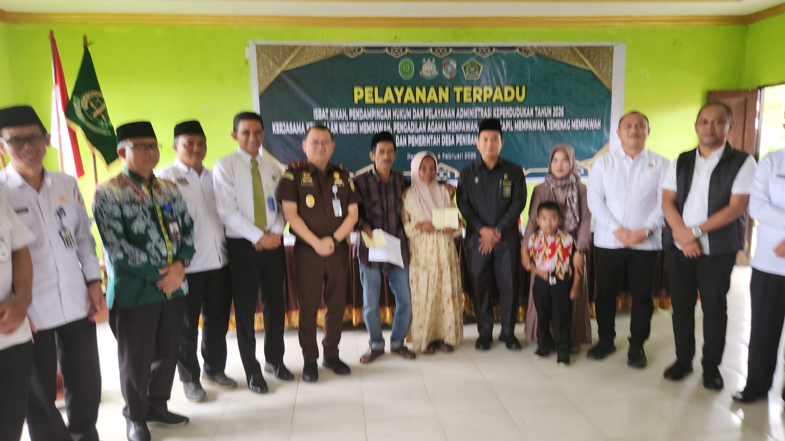 Mempawah – Wakil Kepala Kejaksaan Tinggi Kalimantan Barat Erich Folanda, SH.MHum yang didampingi Asdatun Faisal Banu, SH.MH, dan Kajari Mempawah Dr. Samsuri, SH.MH, menghadiri Pelaksanaan Program Isbat Nikah, Penerbitan Buku Nikah, Kartu Keluarga (KK), serta Kartu Identitas Anak (KIA) yang dilaksanakan pada Rabu (04/02/2026) di Aula Pondok Pesantren Darut Tolibin Desa Peniraman, Kecamatan Sungai Pinyuh, Kabupaten Mempawah.
